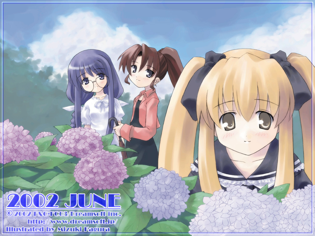 &{ID:13682381 CreatedAt:Wed Mar 18 16:15:04 -0500 2026 Score:0 Width:1024 Height:768 MD5:63d62df1f24cca3be3cf0a093a81b45f Directory:63/d6 Image:63d62df1f24cca3be3cf0a093a81b45f.jpg Rating:general Source:https://fandc.co.jp/dreamsoft/cg_dat/wallpaper/2002/2002_june_1024.jpg Change:1773868504 Owner:danbooru CreatorID:6498 ParentID:0 Sample:0 PreviewHeight:262 PreviewWidth:350 Tags:3girls artist_name black_bow black_dress black_eyes black_sailor_collar black_shirt blonde_hair blue_eyes blue_flower blue_hair bow braid brown_eyes brown_hair brown_umbrella closed_mouth closed_umbrella copyright_notice dated day dreamsoft dress endou_miho_(dreamsoft) flower glass hair_bow holding holding_umbrella hoshikawa_eri hydrangea jacket kagura_mizuki long_hair looking_at_another looking_at_flowers looking_to_the_side low-braided_long_hair low-tied_long_hair multiple_girls nishimiya_ayase official_art official_wallpaper open_clothes open_jacket outdoors pink_flower pink_jacket plant ponytail sailor_collar shirt smile umbrella watermark web_address white_dress white_flower Title: HasNotes:false HasComments:false FileURL:https://img2.gelbooru.com/images/63/d6/63d62df1f24cca3be3cf0a093a81b45f.jpg PreviewURL:https://gelbooru.com/thumbnails/63/d6/thumbnail_63d62df1f24cca3be3cf0a093a81b45f.jpg SampleURL: SampleHeight:0 SampleWidth:0 Status:active PostLocked:0 HasChildren:false IsVideo:false DisplayDate:18.03.2026 16:15}