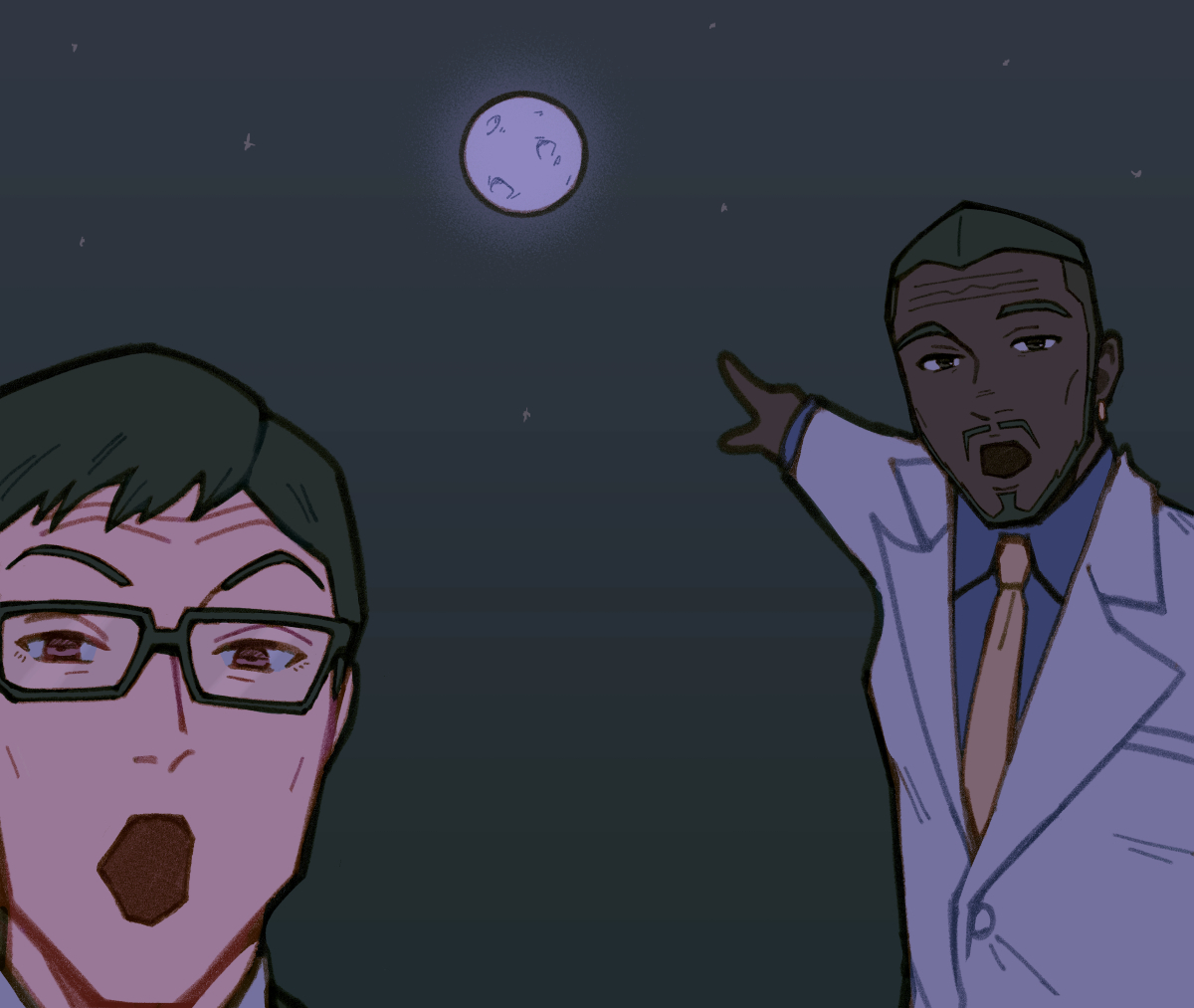 2boys beard black_hair character_request dark-skinned_male dark_skin facial_hair full_moon garcian_smith glasses heartgrooooove jacket killer7 lapels looking_at_viewer male_focus meme moon multiple_boys mustache necktie night notched_lapels open_mouth outdoors pointing short_hair two_soyjaks_pointing_(meme) very_dark_skin very_short_hair white_jacket yellow_necktie