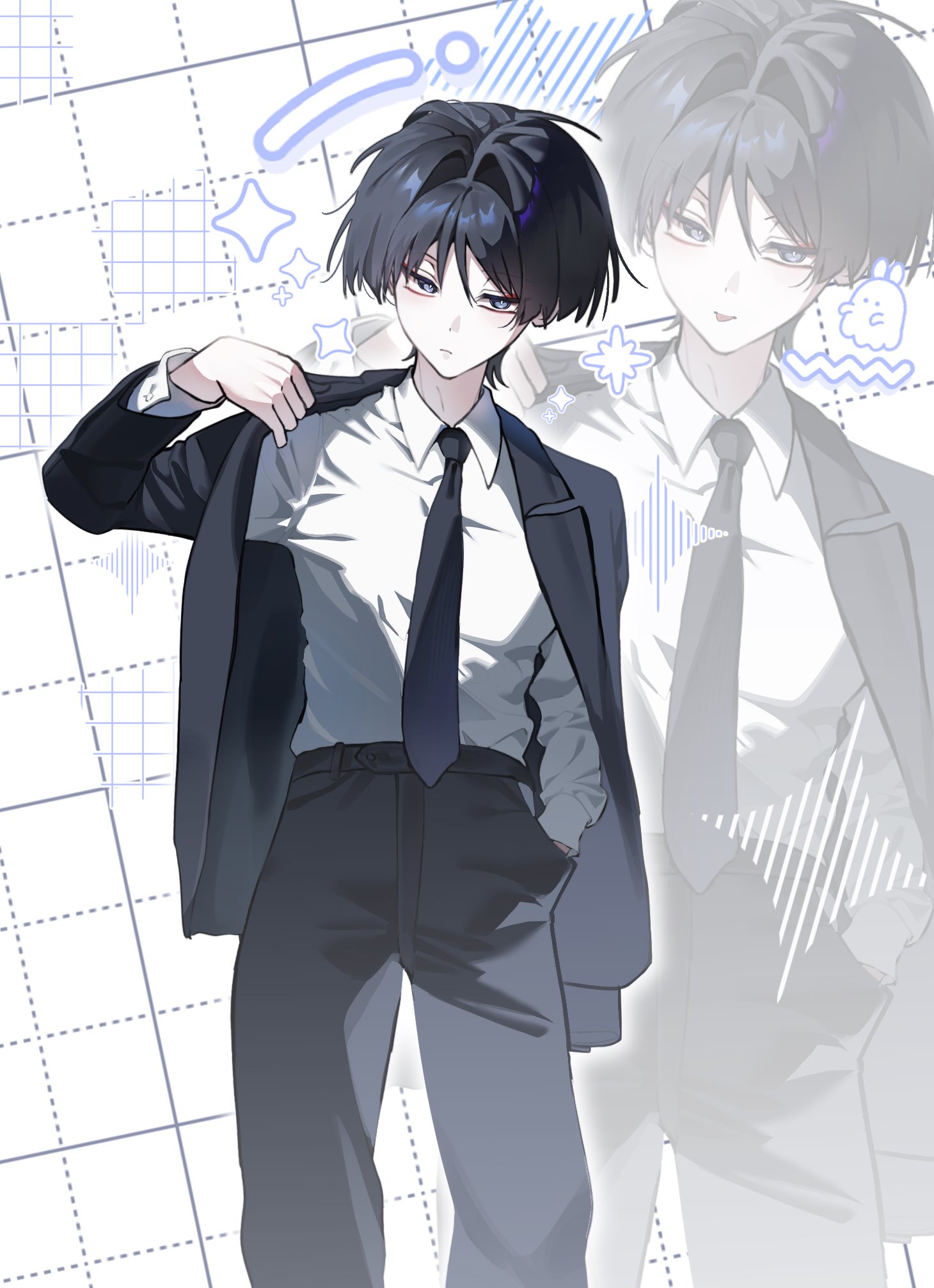 &{ID:13682796 CreatedAt:Wed Mar 18 18:00:38 -0500 2026 Score:0 Width:1460 Height:2012 MD5:d8979d8b7b7f2756f2e70cfc674772d2 Directory:d8/97 Image:d8979d8b7b7f2756f2e70cfc674772d2.jpg Rating:general Source:https://x.com/skalamushu/status/2033915923246288993 Change:1773874838 Owner:danbooru CreatorID:6498 ParentID:0 Sample:1 PreviewHeight:350 PreviewWidth:253 Tags:1boy alternate_costume arm_at_side black_hair black_jacket black_necktie black_pants black_sleeves closed_mouth collared_shirt contemporary different_zoom_layer suit_pants dress_shirt expressionless eyeliner formal_clothes genshin_impact grey_eyes grid_background hair_intakes hand_in_pocket hand_up highres jacket layered_sleeves long_sleeves looking_at_viewer makeup male_focus multicolored_hair necktie open_clothes open_jacket pale_skin pants purple_hair red_eyeliner scaramouche_(genshin_impact) shirt skalamushu solo streaked_hair suit_jacket tsurime undershirt white_background white_shirt white_sleeves wing_collar Title: HasNotes:false HasComments:false FileURL:https://img2.gelbooru.com/images/d8/97/d8979d8b7b7f2756f2e70cfc674772d2.jpg PreviewURL:https://gelbooru.com/thumbnails/d8/97/thumbnail_d8979d8b7b7f2756f2e70cfc674772d2.jpg SampleURL:https://img2.gelbooru.com/samples/d8/97/sample_d8979d8b7b7f2756f2e70cfc674772d2.jpg SampleHeight:1171 SampleWidth:850 Status:active PostLocked:0 HasChildren:false IsVideo:false DisplayDate:18.03.2026 18:00}