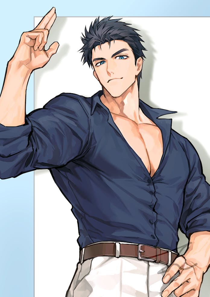 &{ID:13682845 CreatedAt:Wed Mar 18 18:15:27 -0500 2026 Score:0 Width:696 Height:984 MD5:dae4331b92bfdfd28d24a7780ec33c6d Directory:da/e4 Image:dae4331b92bfdfd28d24a7780ec33c6d.jpg Rating:general Source:https://skeb.jp/@sinsin12121/works/54 Change:1773875727 Owner:danbooru CreatorID:6498 ParentID:0 Sample:0 PreviewHeight:350 PreviewWidth:247 Tags:1boy bara belt belt_buckle black_hair blue_eyes blue_shirt brown_belt buckle close-up closed_mouth collared_shirt commentary_request commission forehead hand_on_own_hip kokado_shido_(domo) large_pectorals male_focus muscular muscular_arms muscular_male original pants partially_open_shirt pectoral_cleavage pectorals salute shin_(sinsin12121) shirt short_hair sideburns skeb_commission sleeves_rolled_up spiked_hair tareme thick_eyebrows two-finger_salute v-taper white_pants Title: HasNotes:false HasComments:false FileURL:https://img2.gelbooru.com/images/da/e4/dae4331b92bfdfd28d24a7780ec33c6d.jpg PreviewURL:https://gelbooru.com/thumbnails/da/e4/thumbnail_dae4331b92bfdfd28d24a7780ec33c6d.jpg SampleURL: SampleHeight:0 SampleWidth:0 Status:active PostLocked:0 HasChildren:false IsVideo:false DisplayDate:18.03.2026 18:15}