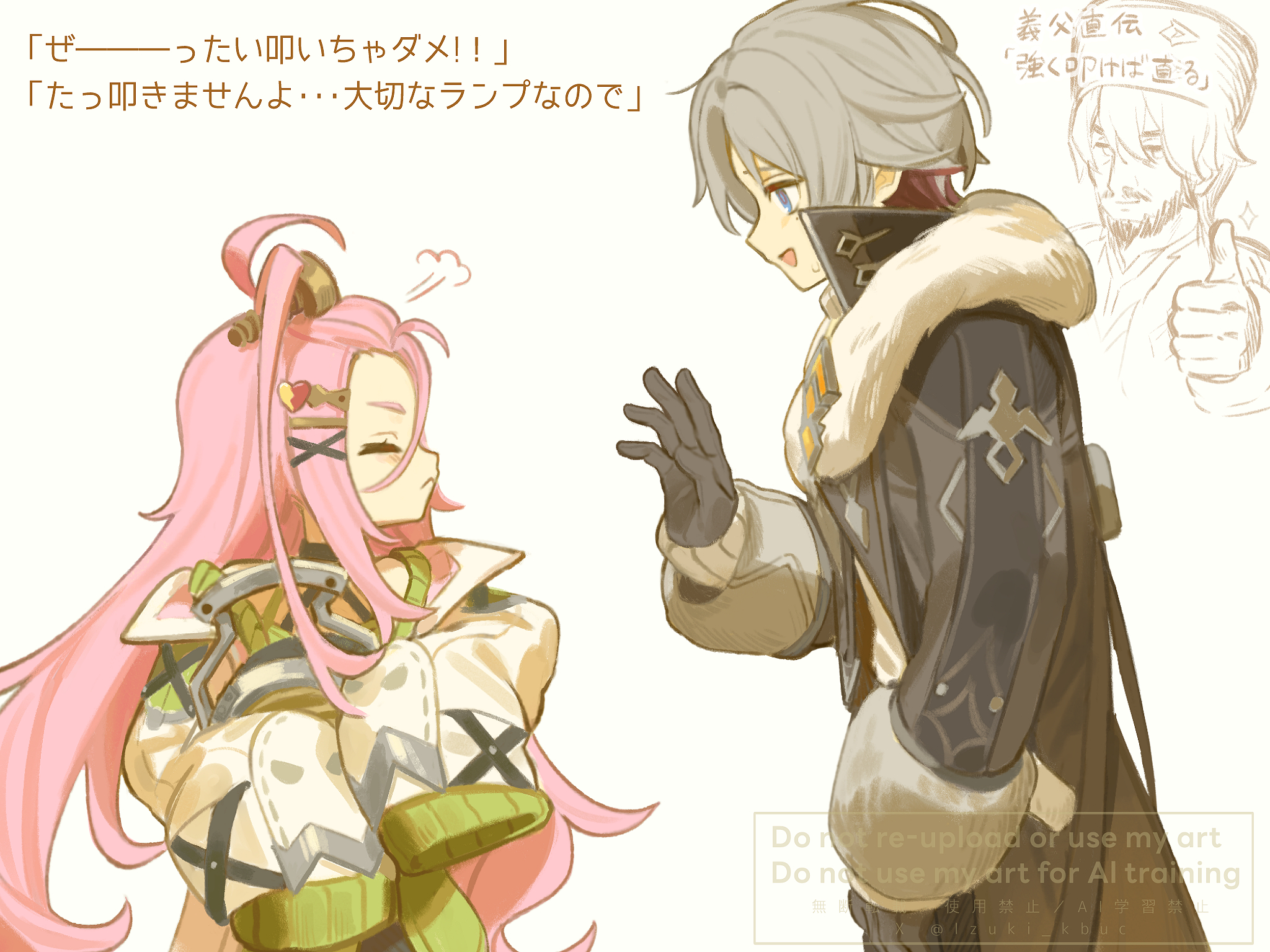 &{ID:13683626 CreatedAt:Wed Mar 18 21:00:10 -0500 2026 Score:2 Width:2048 Height:1535 MD5:ebfe747775f402306a4d1023324b7ac7 Directory:eb/fe Image:ebfe747775f402306a4d1023324b7ac7.jpg Rating:general Source:https://x.com/Izuki_kbuc/status/2018994263707861459 Change:1773885611 Owner:danbooru CreatorID:6498 ParentID:0 Sample:1 PreviewHeight:262 PreviewWidth:350 Tags:1boy 1girl 39_iduki :d ahoge aino_(genshin_impact) artist_name bangs_pinned_back black_dress black_gloves blue_eyes blush closed_eyes closed_mouth coat commentary_request dress eyelashes fur-trimmed_coat fur_trim genshin_impact gloves green_dress grey_coat grey_hair hair_ornament hairclip halter_dress halterneck hand_up highres huge_ahoge illuga_(genshin_impact) lab_coat lapels long_hair long_sleeves looking_at_another looking_to_the_side mole mole_under_eye multicolored_hair nikita_(genshin_impact) off_shoulder open_clothes open_coat open_mouth parted_bangs pink_hair profile puff_of_air red_hair screw_hair_ornament short_hair sidelocks simple_background sleeves_past_fingers sleeves_past_wrists smile sweatdrop thumbs_up translation_request twitter_username two-tone_hair upper_body very_long_hair watermark white_background white_coat x_hair_ornament Title: HasNotes:false HasComments:false FileURL:https://img2.gelbooru.com/images/eb/fe/ebfe747775f402306a4d1023324b7ac7.jpg PreviewURL:https://gelbooru.com/thumbnails/eb/fe/thumbnail_ebfe747775f402306a4d1023324b7ac7.jpg SampleURL:https://img2.gelbooru.com/samples/eb/fe/sample_ebfe747775f402306a4d1023324b7ac7.jpg SampleHeight:637 SampleWidth:850 Status:active PostLocked:0 HasChildren:false IsVideo:false DisplayDate:18.03.2026 21:00}