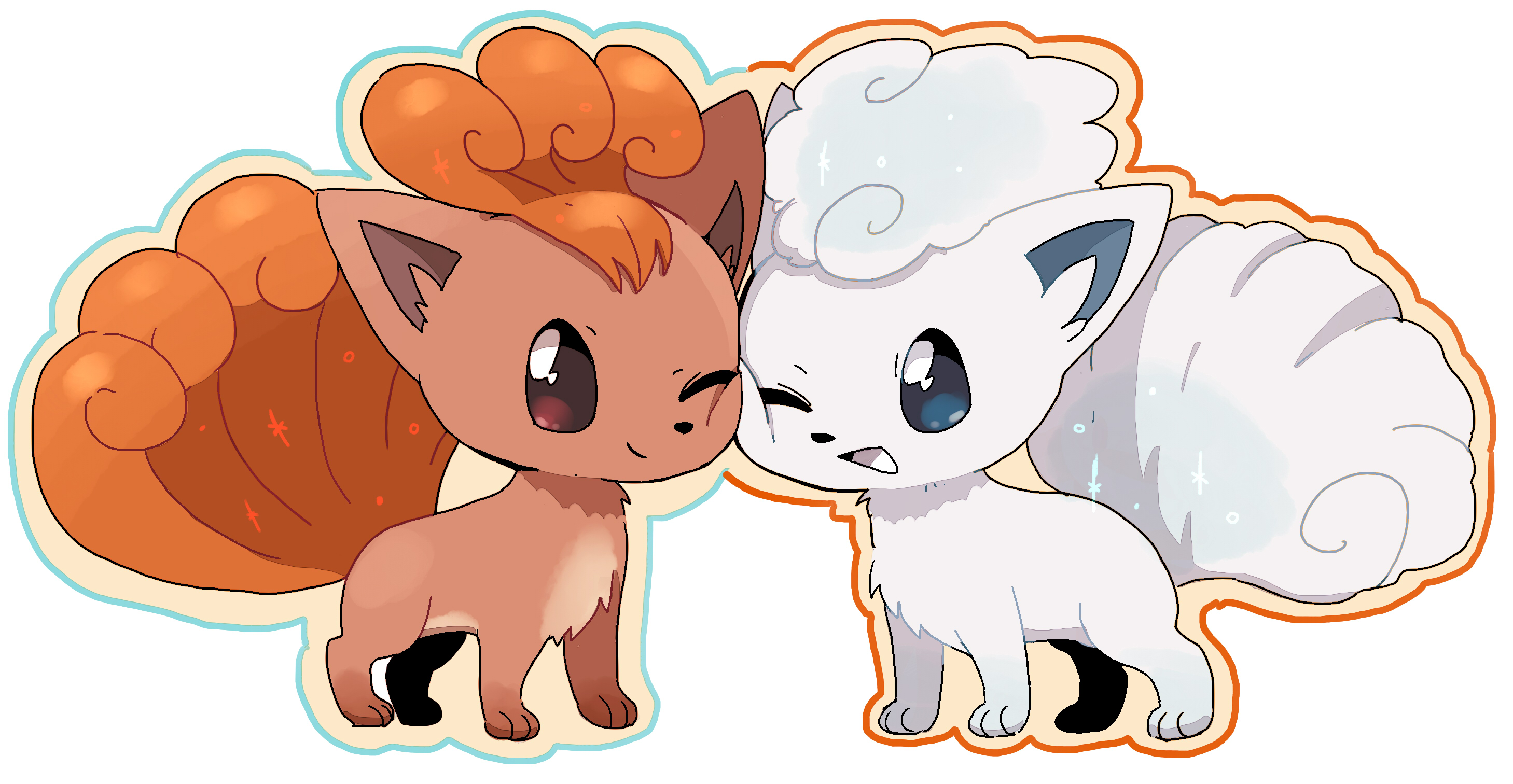 alolan_form alolan_vulpix animal_focus black_eyes blue_eyes cheek-to-cheek cheek_press chuu-son commentary_request full_body gen_1_pokemon gen_7_pokemon heads_together highres nintendo no_humans one_eye_closed pokemon pokemon_(creature) regional_and_normal simple_background vulpix