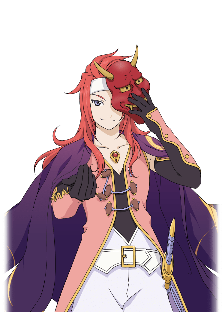 1boy artist_request black_gloves blue_eyes closed_mouth collarbone elbow_gloves game_cg gloves hand_on_mask headband long_hair looking_at_viewer male_focus mask mask_over_one_eye multicolored_gloves official_art oni_mask pants pink_gloves pink_vest reaching reaching_towards_viewer red_hair smile solo standing tales_of_(series) tales_of_asteria tales_of_symphonia third-party_source transparent_background two-tone_gloves vest white_headband white_pants zelos_wilder