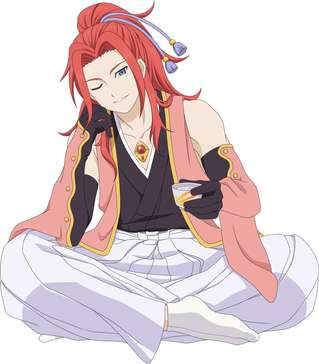 1boy artist_request black_gloves black_kimono blue_eyes chest_jewel collarbone cup elbow_gloves full_body game_cg gloves hair_ornament hakama holding holding_cup japanese_clothes kimono long_hair looking_at_viewer male_focus multicolored_gloves official_alternate_costume official_alternate_hairstyle official_art on_floor one_eye_closed pink_gloves pink_vest red_hair sitting smile socks solo tales_of_(series) tales_of_asteria tales_of_symphonia teeth third-party_source transparent_background two-tone_gloves vest white_hakama white_socks yellow_trim zelos_wilder zelos_wilder_(kimono)