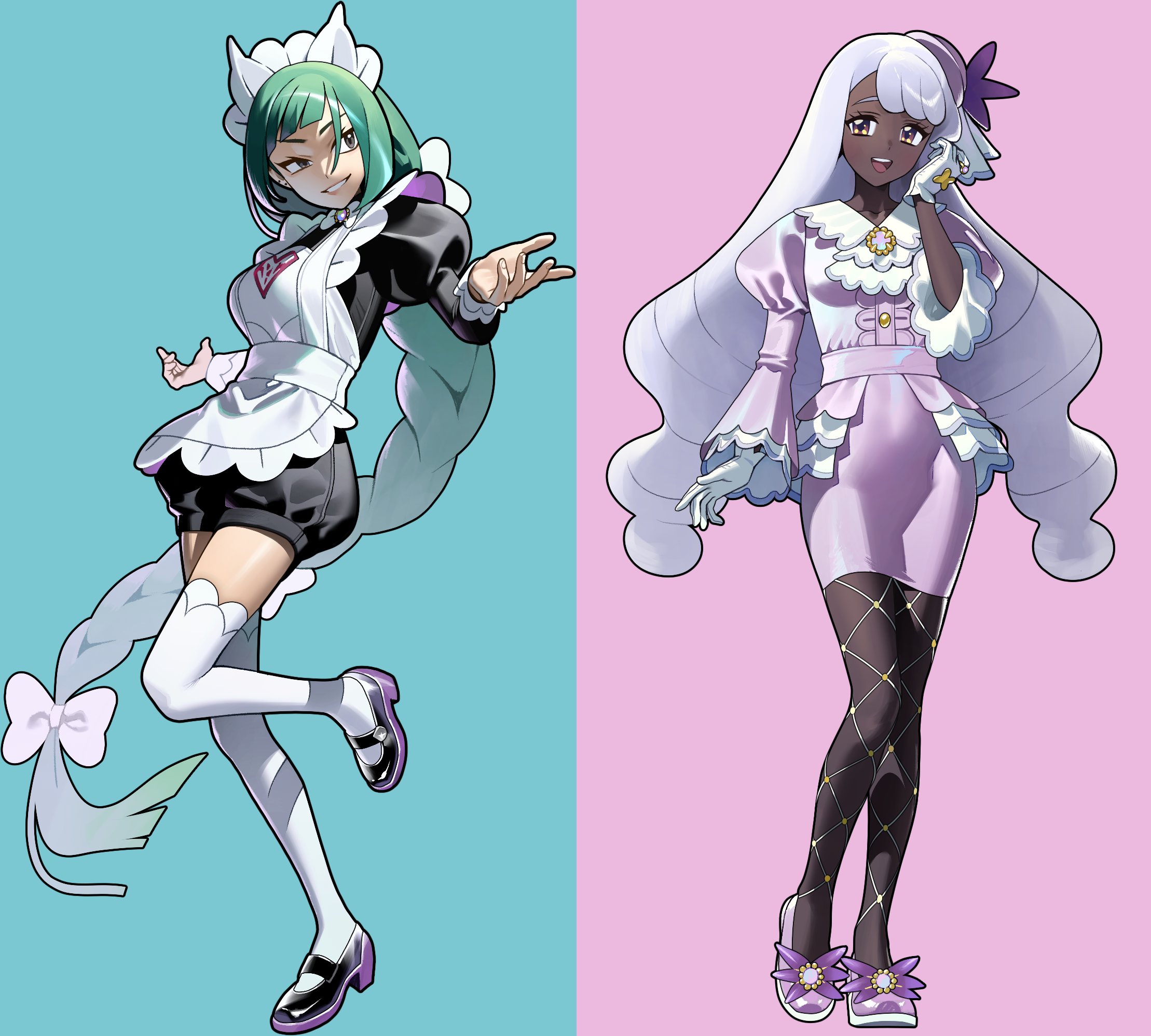&{ID:13691235 CreatedAt:Fri Mar 20 06:00:44 -0500 2026 Score:9 Width:2218 Height:1997 MD5:ad073b19f5f7f0841dab57848c0b69b6 Directory:ad/07 Image:ad073b19f5f7f0841dab57848c0b69b6.jpg Rating:general Source:https://x.com/987645321o/status/2034853375561572630 Change:1774004445 Owner:danbooru CreatorID:6498 ParentID:0 Sample:1 PreviewHeight:315 PreviewWidth:350 Tags:2girls 987645321o apron arm_at_side black_dress braid braided_ponytail breasts brooch brown_eyes commentary dark-skinned_female dark_skin dress frills full_body gloves green_hair hand_up hat highres jacinthe_(pokemon) jewelry juliet_sleeves knee_up large_breasts lebanne_(pokemon) long_hair long_sleeves maid maid_apron maid_headdress makeup mary_janes multiple_girls narrow_waist nintendo open_mouth outstretched_arms pantyhose pink_dress pink_hat pokemon pokemon_legends:_z-a puffy_sleeves shoes short_dress simple_background small_breasts spread_arms standing thighhighs very_long_hair white_gloves white_hair wide_sleeves Title: HasNotes:false HasComments:false FileURL:https://img2.gelbooru.com/images/ad/07/ad073b19f5f7f0841dab57848c0b69b6.jpg PreviewURL:https://gelbooru.com/thumbnails/ad/07/thumbnail_ad073b19f5f7f0841dab57848c0b69b6.jpg SampleURL:https://img2.gelbooru.com/samples/ad/07/sample_ad073b19f5f7f0841dab57848c0b69b6.jpg SampleHeight:765 SampleWidth:850 Status:active PostLocked:0 HasChildren:false IsVideo:false DisplayDate:20.03.2026 06:00}