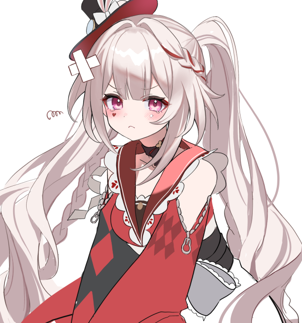 1girl angry annoyed braid clothing_cutout commentary_request diamond_(shape) diamond_facial_mark diamond_on_cheek facial_mark frown hat hat_ornament heart heart_facial_mark honkai:_star_rail honkai_(series) kiki-yu long_hair looking_at_viewer mark_under_both_eyes mini_hat mini_top_hat multicolored_hair pink_eyes rabbit_hat_ornament shoulder_cutout simple_background solo sparkle_(honkai:_star_rail) sparxie_(honkai:_star_rail) squiggle top_hat twintails white_background white_hair