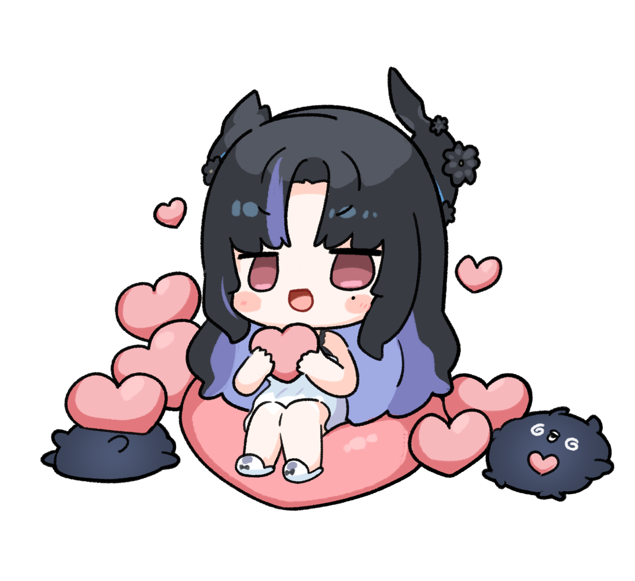 1girl babydoll black_hair blue_babydoll blue_hair colored_inner_hair commentary demon_horns heart highres holding holding_heart hololive hololive_english horns jailbird_(nerissa_ravencroft) long_hair mole mole_under_eye multicolored_hair nerissa_ravencroft nerissa_ravencroft_(nighttime_princess) official_alternate_costume open_mouth red_eyes smile snowmya solo very_long_hair virtual_youtuber