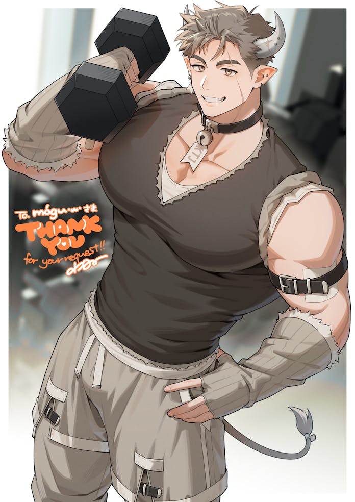 &{ID:13694328 CreatedAt:Fri Mar 20 17:00:35 -0500 2026 Score:0 Width:696 Height:984 MD5:3bfa93806271af8f24f51acd856a8ba9 Directory:3b/fa Image:3bfa93806271af8f24f51acd856a8ba9.jpg Rating:general Source:https://skeb.jp/@waaaaaa_i/works/39 Change:1774044035 Owner:danbooru CreatorID:6498 ParentID:0 Sample:0 PreviewHeight:350 PreviewWidth:247 Tags:1boy amagosi arm_warmers bell belt brown_eyes cargo_pants choker commentary_request commission cow_horns cow_tail dog_tags draph dumbbell ear_piercing exercising facial_scar grey_hair holding horns indoors male_focus muscular neck_bell original pants piercing pointy_ears scar scar_across_eyebrow scar_on_cheek scar_on_face shirt short_hair skeb_commission sleeveless sleeveless_shirt smile spiked_hair tail weightlifting Title: HasNotes:false HasComments:false FileURL:https://img2.gelbooru.com/images/3b/fa/3bfa93806271af8f24f51acd856a8ba9.jpg PreviewURL:https://gelbooru.com/thumbnails/3b/fa/thumbnail_3bfa93806271af8f24f51acd856a8ba9.jpg SampleURL: SampleHeight:0 SampleWidth:0 Status:active PostLocked:0 HasChildren:false IsVideo:false DisplayDate:20.03.2026 17:00}