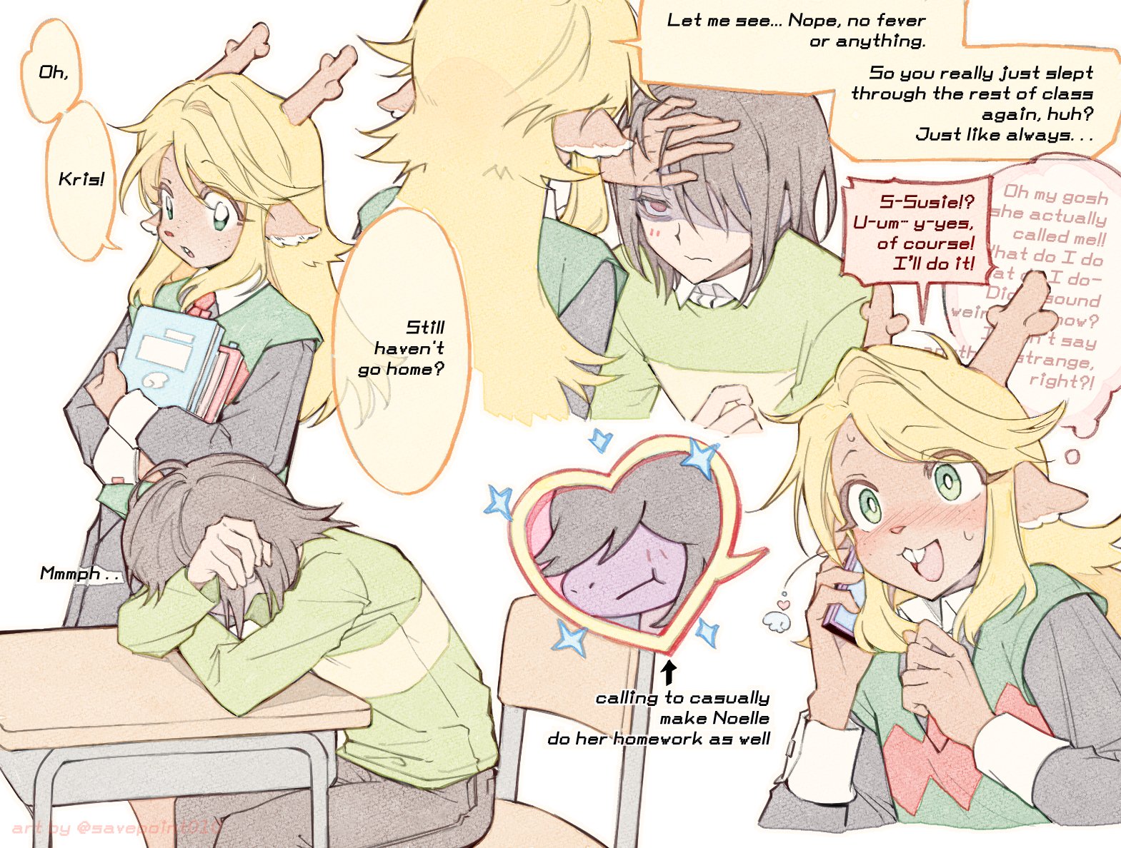 &{ID:13695158 CreatedAt:Fri Mar 20 20:16:58 -0500 2026 Score:3 Width:1569 Height:1188 MD5:04970d1eb1d45be06de96e1eefea30d7 Directory:04/97 Image:04970d1eb1d45be06de96e1eefea30d7.jpg Rating:general Source:https://x.com/savepoint010/status/2034653412772790524 Change:1774055818 Owner:danbooru CreatorID:6498 ParentID:0 Sample:1 PreviewHeight:265 PreviewWidth:350 Tags:1girl 1other androgynous animal_ears antlers blonde_hair blush bright_pupils brown_hair buck_teeth cellphone collared_shirt commentary commentary_request deer_ears deltarune english_commentary english_text freckles green_eyes green_sweater hand_on_another's_forehead horns korean_commentary kris_(deltarune) long_hair long_sleeves mixed-language_commentary noelle_holiday open_mouth phone red_eyes reindeer_antlers reindeer_girl savepoint010 shirt short_hair smartphone speech_bubble susie_(deltarune) sweatdrop sweater sweater_vest teeth thought_bubble upper_teeth_only utdr_(toby_fox) white_pupils Title: HasNotes:false HasComments:false FileURL:https://img2.gelbooru.com/images/04/97/04970d1eb1d45be06de96e1eefea30d7.jpg PreviewURL:https://gelbooru.com/thumbnails/04/97/thumbnail_04970d1eb1d45be06de96e1eefea30d7.jpg SampleURL:https://img2.gelbooru.com/samples/04/97/sample_04970d1eb1d45be06de96e1eefea30d7.jpg SampleHeight:644 SampleWidth:850 Status:active PostLocked:0 HasChildren:false IsVideo:false DisplayDate:20.03.2026 20:16}