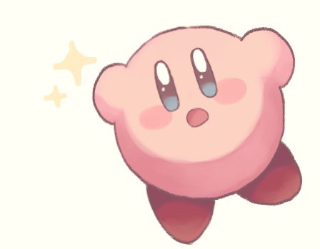 1boy :o blue_eyes blush_stickers commentary_request creature full_body kirby kirby_(series) looking_at_viewer lowres male_focus nintendo no_humans open_mouth ro2noki simple_background solo sparkle white_background