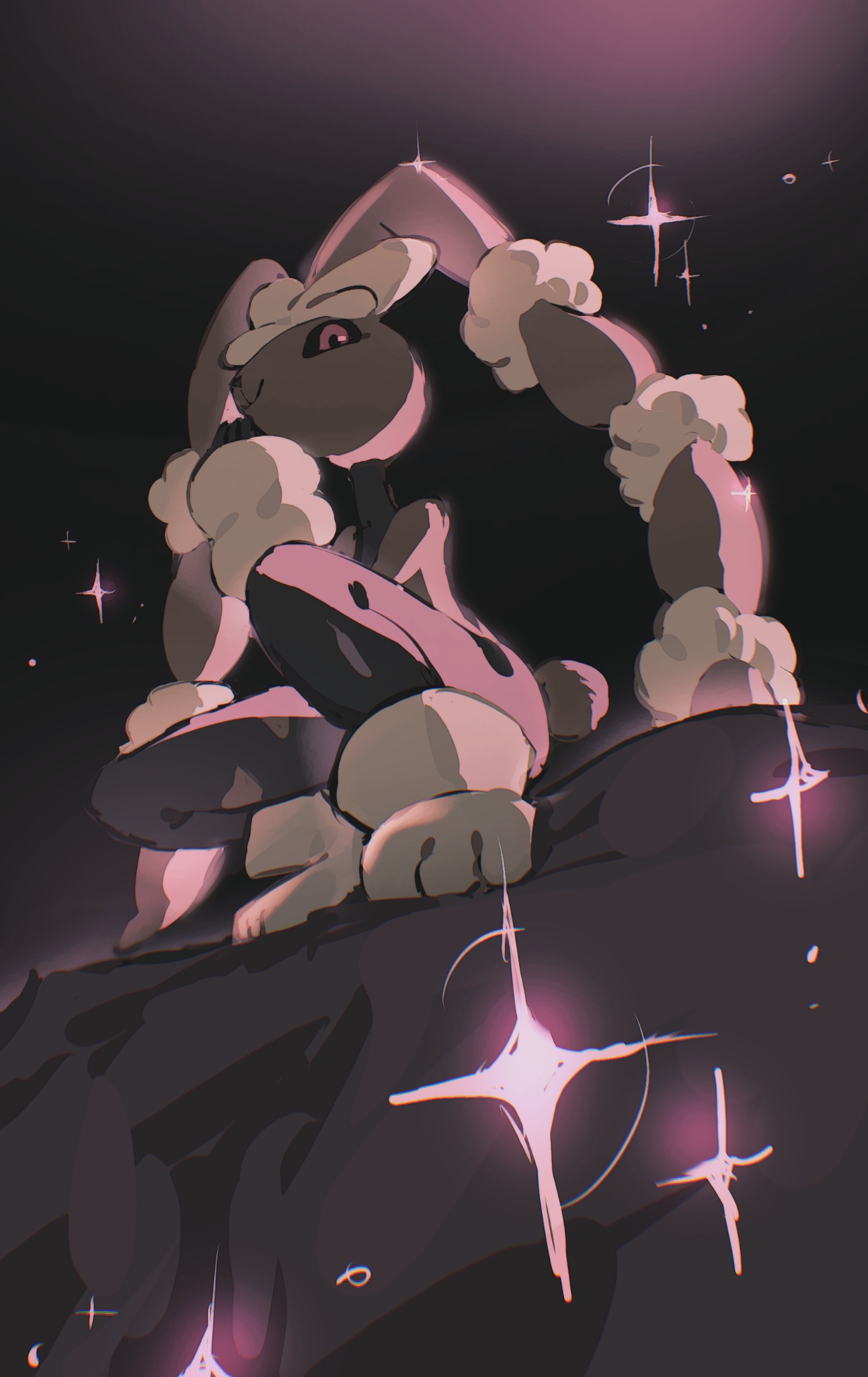 black_sclera brown_fur colored_sclera commentary_request gen_4_pokemon highres looking_at_viewer lopunny mega_lopunny mega_pokemon nintendo pokemon pokemon_(creature) red_eyes solo sparkle squatting t2oc1vpose61326