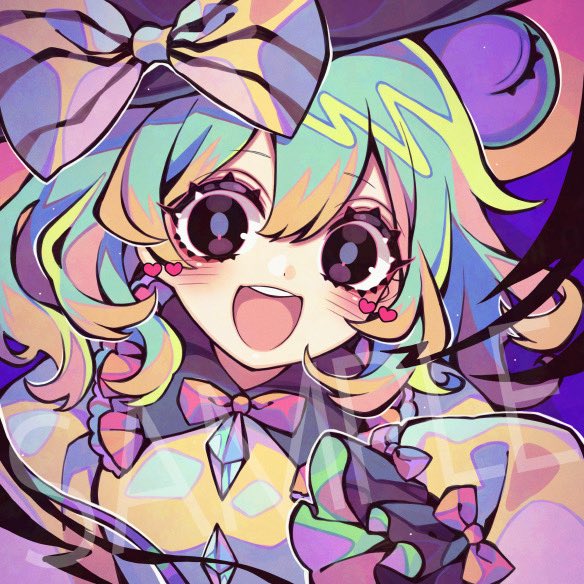&{ID:13703401 CreatedAt:Sun Mar 22 04:15:35 -0500 2026 Score:1 Width:584 Height:584 MD5:7886f09504d1d5b0574af7b106dcdcd6 Directory:78/86 Image:7886f09504d1d5b0574af7b106dcdcd6.jpg Rating:general Source:https://x.com/suzukannn/status/2012474628036493386 Change:1774170935 Owner:danbooru CreatorID:6498 ParentID:0 Sample:0 PreviewHeight:350 PreviewWidth:350 Tags:1girl :d black_eyes black_hat bow bowtie buttons commentary_request diamond_button frilled_sleeves frills green_hair hat hat_bow komeiji_koishi kyouda_suzuka long_hair long_sleeves looking_at_viewer open_mouth purple_background purple_pupils red_bow red_bowtie sample_watermark shirt sleeves_past_fingers sleeves_past_wrists smile solo striped_clothes teeth touhou upper_teeth_only watermark yellow_bow yellow_shirt Title: HasNotes:false HasComments:false FileURL:https://img2.gelbooru.com/images/78/86/7886f09504d1d5b0574af7b106dcdcd6.jpg PreviewURL:https://gelbooru.com/thumbnails/78/86/thumbnail_7886f09504d1d5b0574af7b106dcdcd6.jpg SampleURL: SampleHeight:0 SampleWidth:0 Status:active PostLocked:0 HasChildren:false IsVideo:false DisplayDate:22.03.2026 04:15}