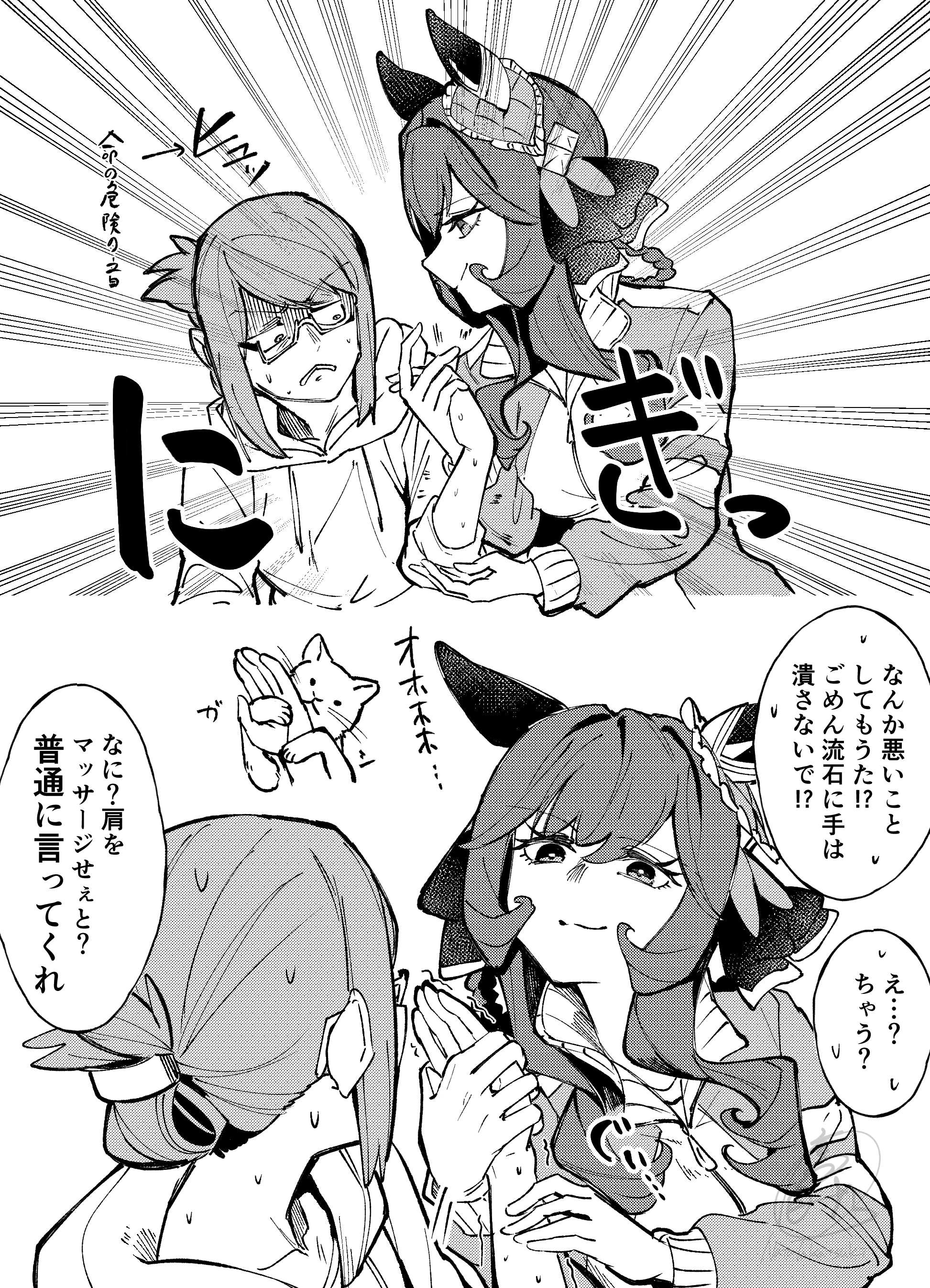&{ID:13704025 CreatedAt:Sun Mar 22 06:16:09 -0500 2026 Score:3 Width:1945 Height:2693 MD5:053f1c77ec94a7fd0d13d4363e3342a3 Directory:05/3f Image:053f1c77ec94a7fd0d13d4363e3342a3.png Rating:general Source:https://x.com/getuyoubi5/status/2035666362589425857 Change:1774178170 Owner:danbooru CreatorID:6498 ParentID:0 Sample:1 PreviewHeight:350 PreviewWidth:252 Tags:2girls absurdres animal_ears braid braided_hair_rings breasts cat closed_mouth commentary_request ear_covers female_trainer_(umamusume) gentildonna_(umamusume) glasses greyscale hair_between_eyes hair_rings heart-shaped_ornament heart_ear_ornament highres holding_another's_arm hood hood_down hoodie horse_ears horse_girl jacket long_hair looking_at_another monochrome multiple_girls smile speech_bubble takatsuki_nato tracen_training_uniform track_jacket trainer_(umamusume) translation_request umamusume Title: HasNotes:false HasComments:false FileURL:https://img2.gelbooru.com/images/05/3f/053f1c77ec94a7fd0d13d4363e3342a3.png PreviewURL:https://gelbooru.com/thumbnails/05/3f/thumbnail_053f1c77ec94a7fd0d13d4363e3342a3.jpg SampleURL:https://img2.gelbooru.com/samples/05/3f/sample_053f1c77ec94a7fd0d13d4363e3342a3.jpg SampleHeight:1177 SampleWidth:850 Status:active PostLocked:0 HasChildren:false IsVideo:false DisplayDate:22.03.2026 06:16}