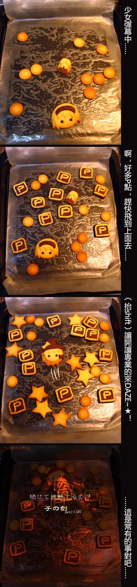 4koma alice_margatroid chinese_text comic cookie danmaku female_focus food food_focus gameplay_mechanics highres huu00 imperishable_night kirisame_marisa long_image partially_translated photo_(medium) power-up shanghai_doll tall_image touhou translation_request tray truth unconventional_media