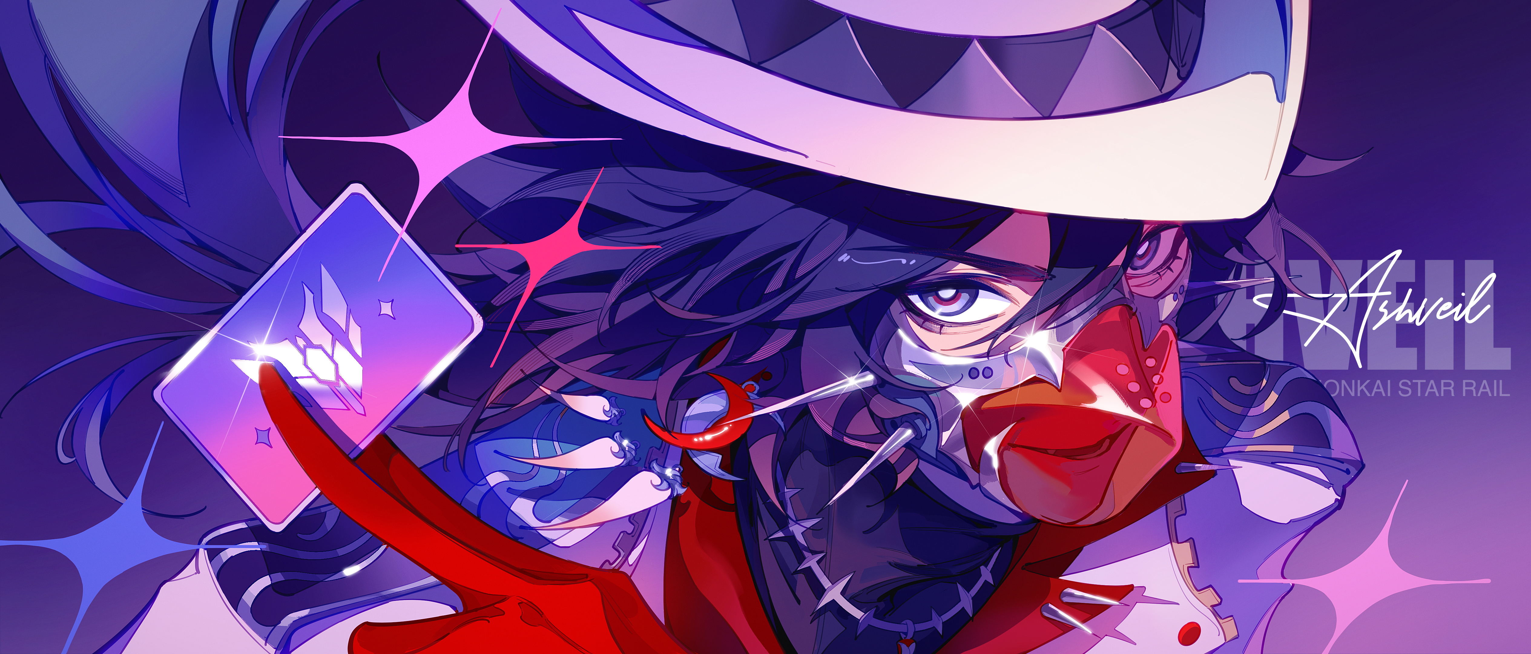 &{ID:13704905 CreatedAt:Sun Mar 22 09:01:36 -0500 2026 Score:0 Width:5058 Height:2160 MD5:2ced90c5bb17d0e1caac76f46228a96b Directory:2c/ed Image:2ced90c5bb17d0e1caac76f46228a96b.png Rating:general Source:https://saskeboom.lofter.com/post/2f3942_34d596cb9 Change:1774188098 Owner:danbooru CreatorID:6498 ParentID:0 Sample:1 PreviewHeight:149 PreviewWidth:350 Tags:1boy absurdres alternate_costume ashveil_(honkai:_star_rail) black_hair card character_name chinese_commentary close-up coat commentary_request cowboy_hat cursive glaring gloves hair_between_eyes hand_up hat highres holding holding_card honkai:_star_rail honkai_(series) leaning_forward long_hair long_sleeves looking_at_viewer mask mouth_mask multicolored_eyes open_mouth purple_background purple_eyes red_gloves saskeboom shaded_face solo upper_body wavy_hair white_coat Title: HasNotes:false HasComments:false FileURL:https://img2.gelbooru.com/images/2c/ed/2ced90c5bb17d0e1caac76f46228a96b.png PreviewURL:https://gelbooru.com/thumbnails/2c/ed/thumbnail_2ced90c5bb17d0e1caac76f46228a96b.jpg SampleURL:https://img2.gelbooru.com/samples/2c/ed/sample_2ced90c5bb17d0e1caac76f46228a96b.jpg SampleHeight:363 SampleWidth:850 Status:active PostLocked:0 HasChildren:false IsVideo:false DisplayDate:22.03.2026 09:01}