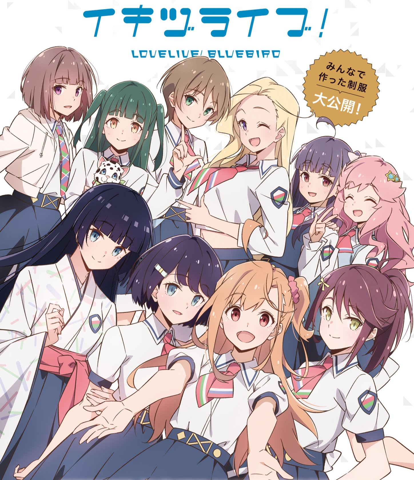 6+girls ;) ;d ahoge azabu_mai black_pantyhose black_shoes black_socks black_thighhighs blonde_hair blue_dress blue_eyes blue_hair blue_hakama blue_nails blue_necktie blue_skirt blunt_bangs blunt_ends blush bob_cut bow brown_eyes brown_hair brown_shoes chofu_noriko closed_mouth collared_shirt commentary_request corrupted_twitter_file cropped_shirt double_v dress everyone finger_to_cheek four-finger_heart_hands full_body goto_akira green_eyes green_hair green_necktie grey_pantyhose hair_bow hair_flaps hair_ornament hair_scrunchie hairclip hakama hakama_skirt half-heart_hands hand_on_own_cheek hand_on_own_face hands_on_own_chest harumiya_yukuri heart heart_hands highres hood hooded_jacket ikizulive!_1st_live_~what_is_my_l?~ ikizulive!_love_live!_bluebird jacket japanese_clothes kanazawa_miracle kimono komagata_hanabi konohana_aurora leg_up loafers long_dress long_hair long_sleeves looking_at_viewer love_high_school_uniform love_live! mary_janes midriff miniskirt multicolored_necktie multiple_girls navel neckerchief necktie official_art one_eye_closed one_side_up open_clothes open_hand open_jacket open_mouth orange_hair own_hands_together pantyhose parted_lips pinafore_dress pink_bow pink_hair pink_neckerchief pink_necktie pink_scrunchie pink_shoes pixiv_id pixiv_logo plaid_clothes plaid_necktie ponytail puffy_short_sleeves puffy_sleeves purple_eyes purple_hair sasaki_shion school_uniform scrunchie shirt shoes short_hair short_sleeves sidelocks simple_background skirt sleeveless sleeveless_dress smile sneakers socks standing standing_on_one_leg star_(symbol) star_hair_ornament takahashi_polka thighhighs third-party_source twitter_username twitter_x_logo two_side_up v wavy_hair white_background white_jacket white_kimono white_shirt white_shoes white_socks yamada_midori yellow_eyes yellow_shoes zettai_ryouiki