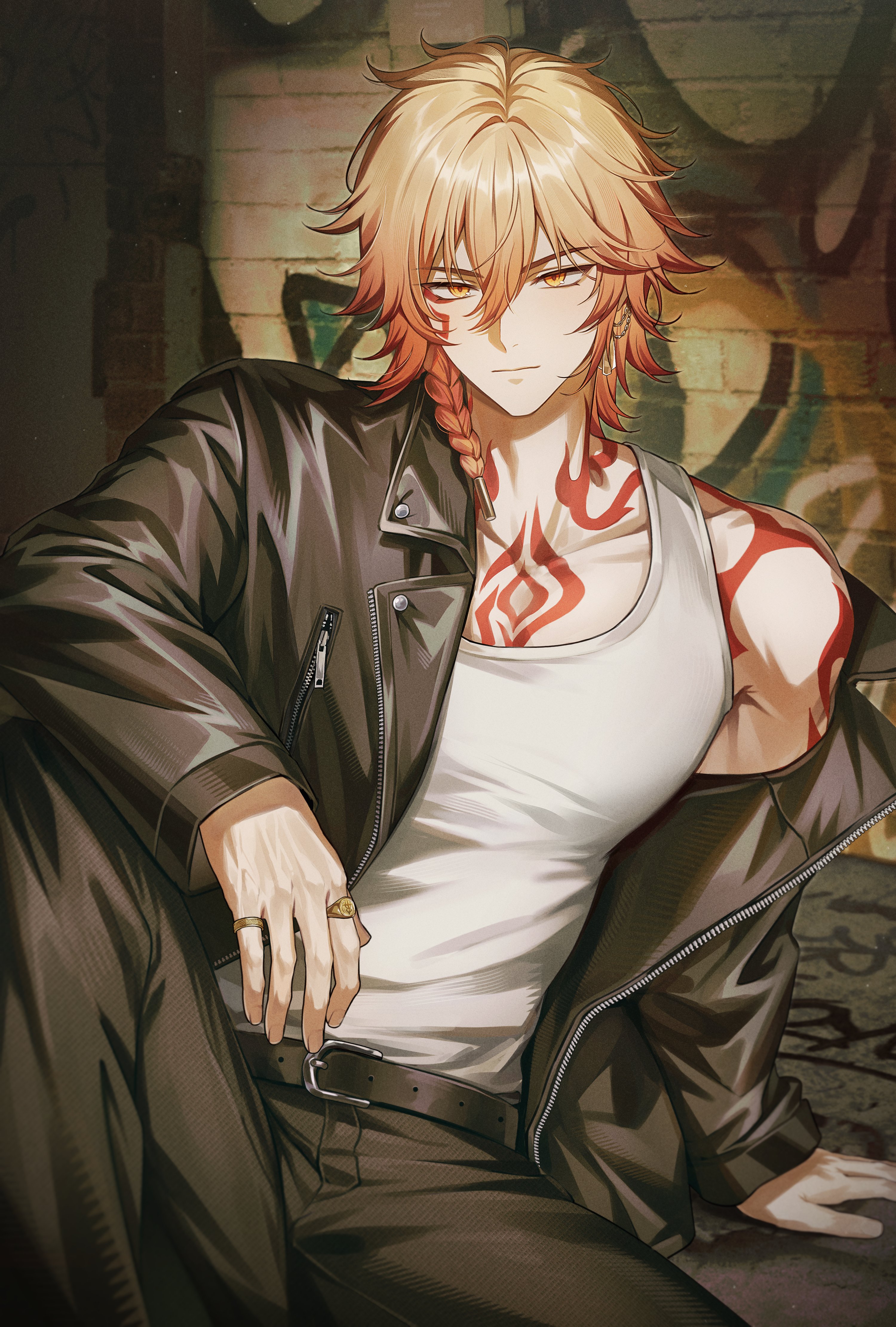 &{ID:13712487 CreatedAt:Mon Mar 23 11:15:02 -0500 2026 Score:0 Width:3000 Height:4440 MD5:ec7a65c88c73dd944dda9268cde4808a Directory:ec/7a Image:ec7a65c88c73dd944dda9268cde4808a.jpg Rating:general Source:https://x.com/_manggae_u/status/2034654680400421093 Change:1774282504 Owner:danbooru CreatorID:6498 ParentID:0 Sample:1 PreviewHeight:350 PreviewWidth:236 Tags:1boy absurdres arm_tattoo belt black_belt black_jacket black_pants blonde_hair braid chest_tattoo commentary earrings facial_tattoo gold_earrings gold_ring gradient_hair highres honkai:_star_rail honkai_(series) jacket jewelry leather leather_jacket looking_at_viewer male_focus manggae_u medium_hair multicolored_hair multiple_rings mydei_(honkai:_star_rail) off_shoulder open_clothes open_jacket pants red_hair red_tattoo ring side_braid solo tank_top tattoo white_tank_top yellow_eyes Title: HasNotes:false HasComments:false FileURL:https://img2.gelbooru.com/images/ec/7a/ec7a65c88c73dd944dda9268cde4808a.jpg PreviewURL:https://gelbooru.com/thumbnails/ec/7a/thumbnail_ec7a65c88c73dd944dda9268cde4808a.jpg SampleURL:https://img2.gelbooru.com/samples/ec/7a/sample_ec7a65c88c73dd944dda9268cde4808a.jpg SampleHeight:1258 SampleWidth:850 Status:active PostLocked:0 HasChildren:false IsVideo:false DisplayDate:23.03.2026 11:15}