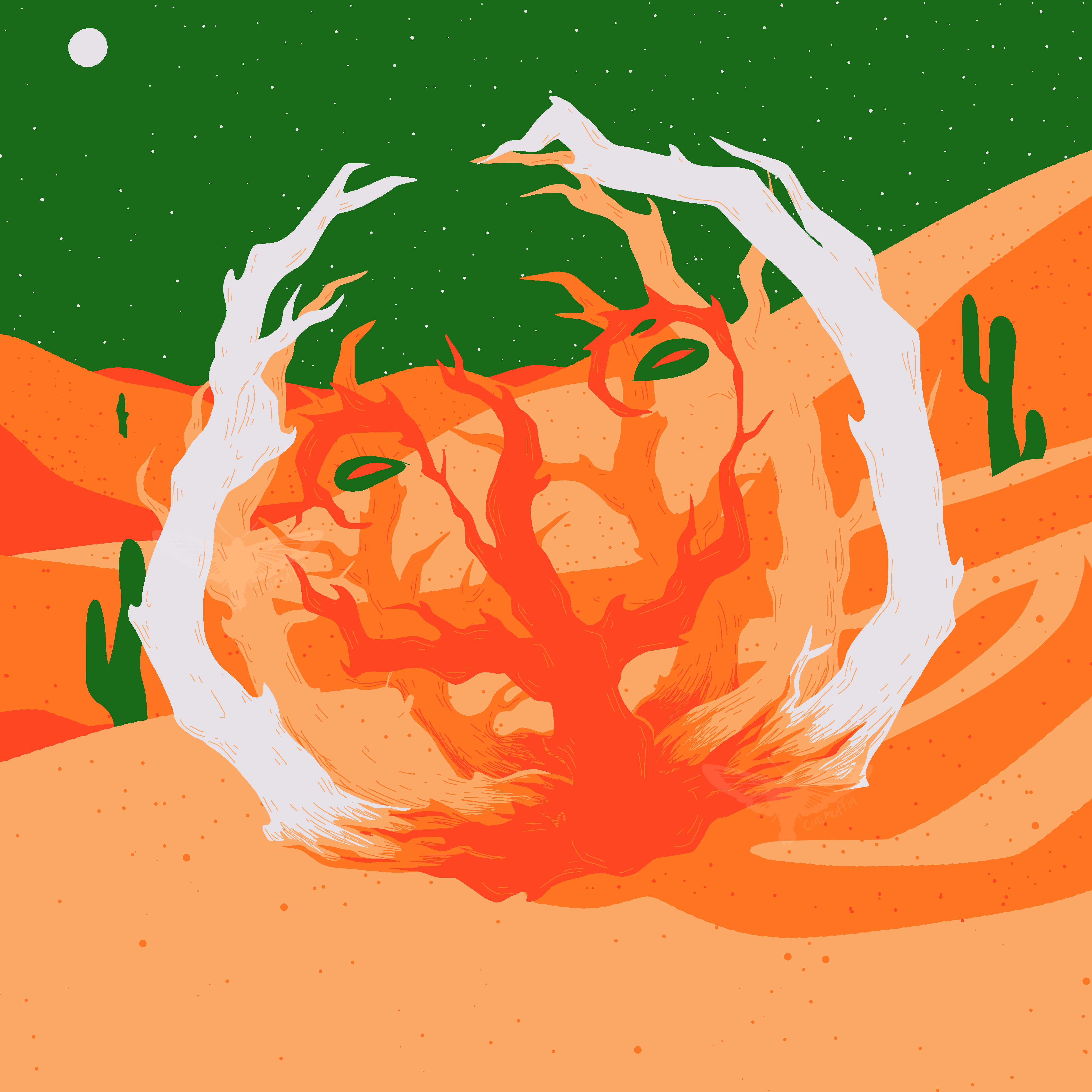 absurdres brambleghast cactus cinimuffin desert full_body full_moon highres limited_palette moon night nintendo no_humans no_lineart outdoors pokemon pokemon_(creature) pokemon_focus sand shadow sky solo star_(sky) starry_sky