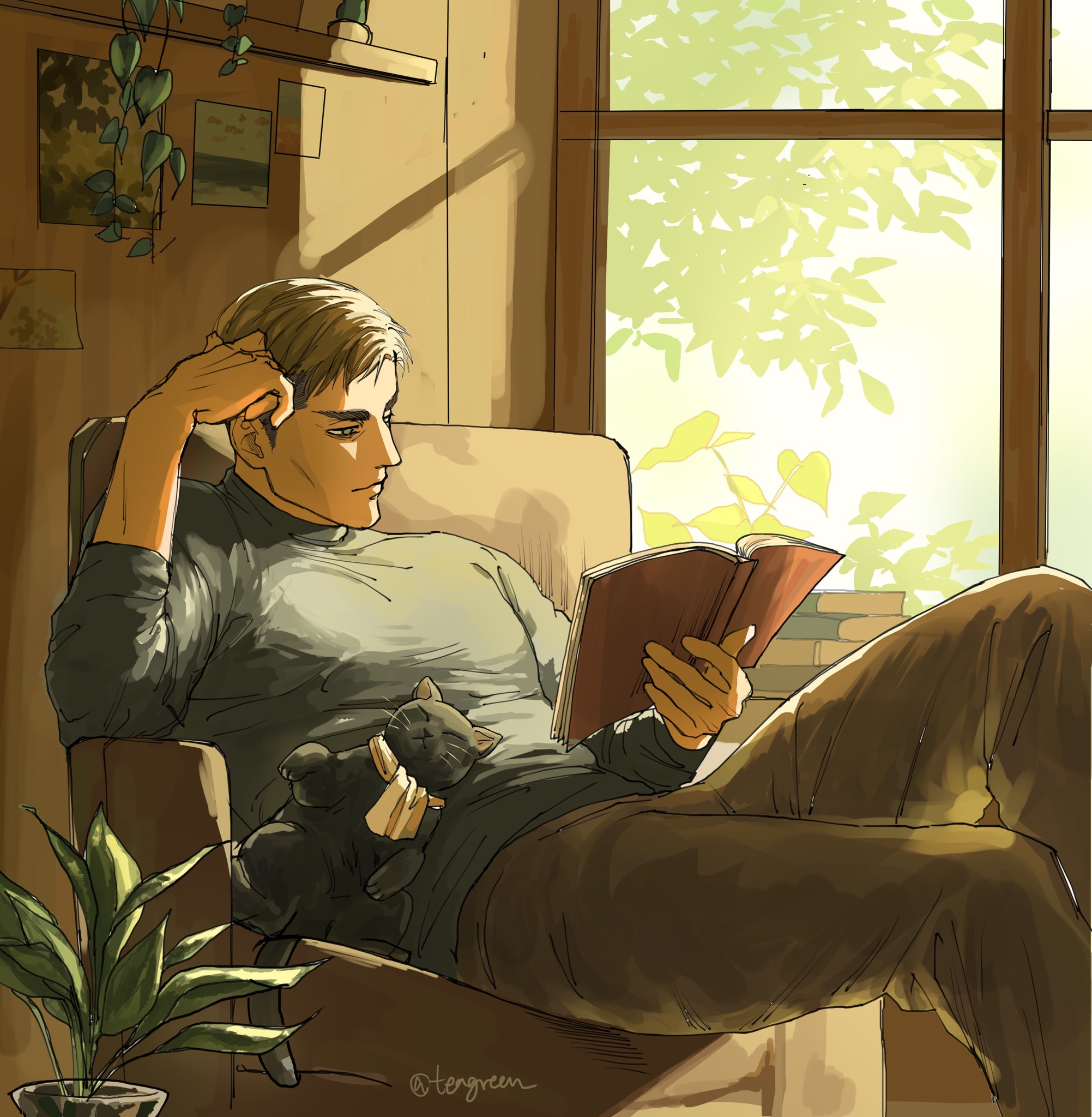 &{ID:13714376 CreatedAt:Mon Mar 23 18:00:18 -0500 2026 Score:0 Width:2003 Height:2048 MD5:741f34ee1bfdbf0858ff50a0e10945d4 Directory:74/1f Image:741f34ee1bfdbf0858ff50a0e10945d4.jpg Rating:general Source:https://x.com/teagreen_/status/2036069948922212362 Change:1774306819 Owner:danbooru CreatorID:6498 ParentID:0 Sample:1 PreviewHeight:350 PreviewWidth:342 Tags:1boy animalization apricitas aquiline_nose ascot black_cat blonde_hair blue_shirt book book_stack cat chair closed_mouth commentary_request elbow_rest erwin_smith grey_pants highres holding holding_book indoors korean_commentary levi_(shingeki_no_kyojin) male_focus nose open_book pants photo_(object) plant potted_plant shingeki_no_kyojin shirt short_hair short_sideburns sideburns sitting solo window Title: HasNotes:false HasComments:false FileURL:https://img2.gelbooru.com/images/74/1f/741f34ee1bfdbf0858ff50a0e10945d4.jpg PreviewURL:https://gelbooru.com/thumbnails/74/1f/thumbnail_741f34ee1bfdbf0858ff50a0e10945d4.jpg SampleURL:https://img2.gelbooru.com/samples/74/1f/sample_741f34ee1bfdbf0858ff50a0e10945d4.jpg SampleHeight:869 SampleWidth:850 Status:active PostLocked:0 HasChildren:false IsVideo:false DisplayDate:23.03.2026 18:00}