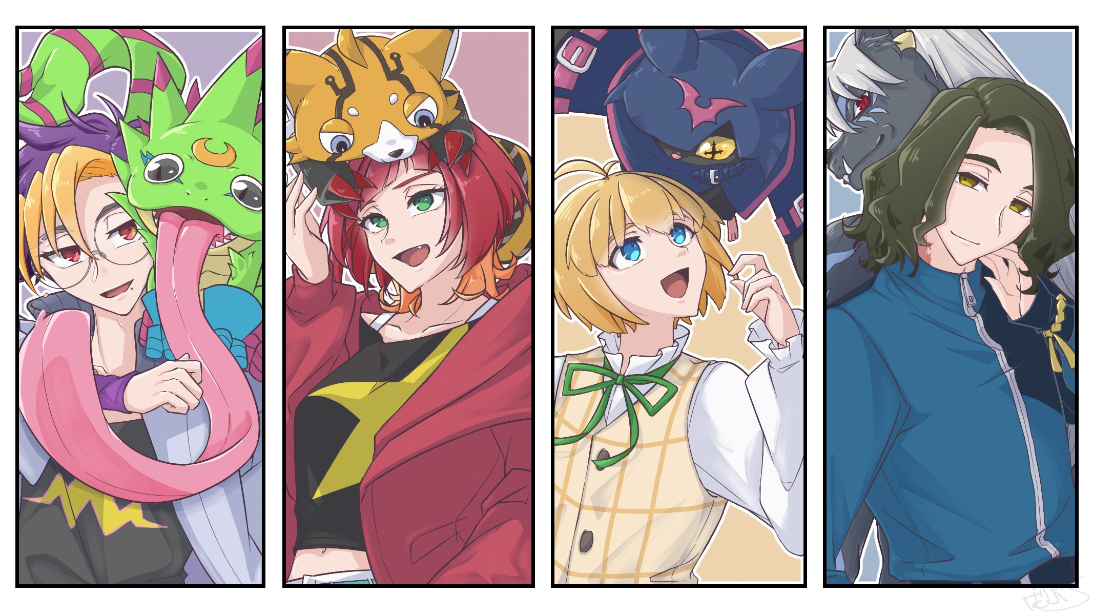 black_fur chiropmon claws digimon digimon_(creature) digimon_beatbreak gekkomon haribuchi jacket kuonji_makoto multicolored_fur murasamemon orange_fur pristimon sakuya_reina sawashiro_kyo short_hair star_(symbol) tail tenma_tomoro white_fur