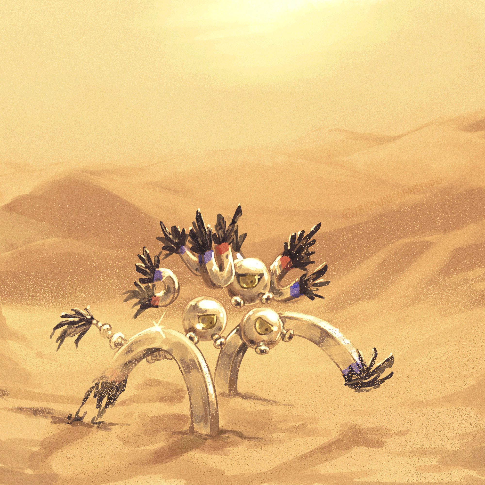 alt_text commentary desert english_commentary friedunicornstudio full_body glint highres magnet nintendo no_humans outdoors pokemon pokemon_(creature) pokemon_focus sand sandy_shocks screw