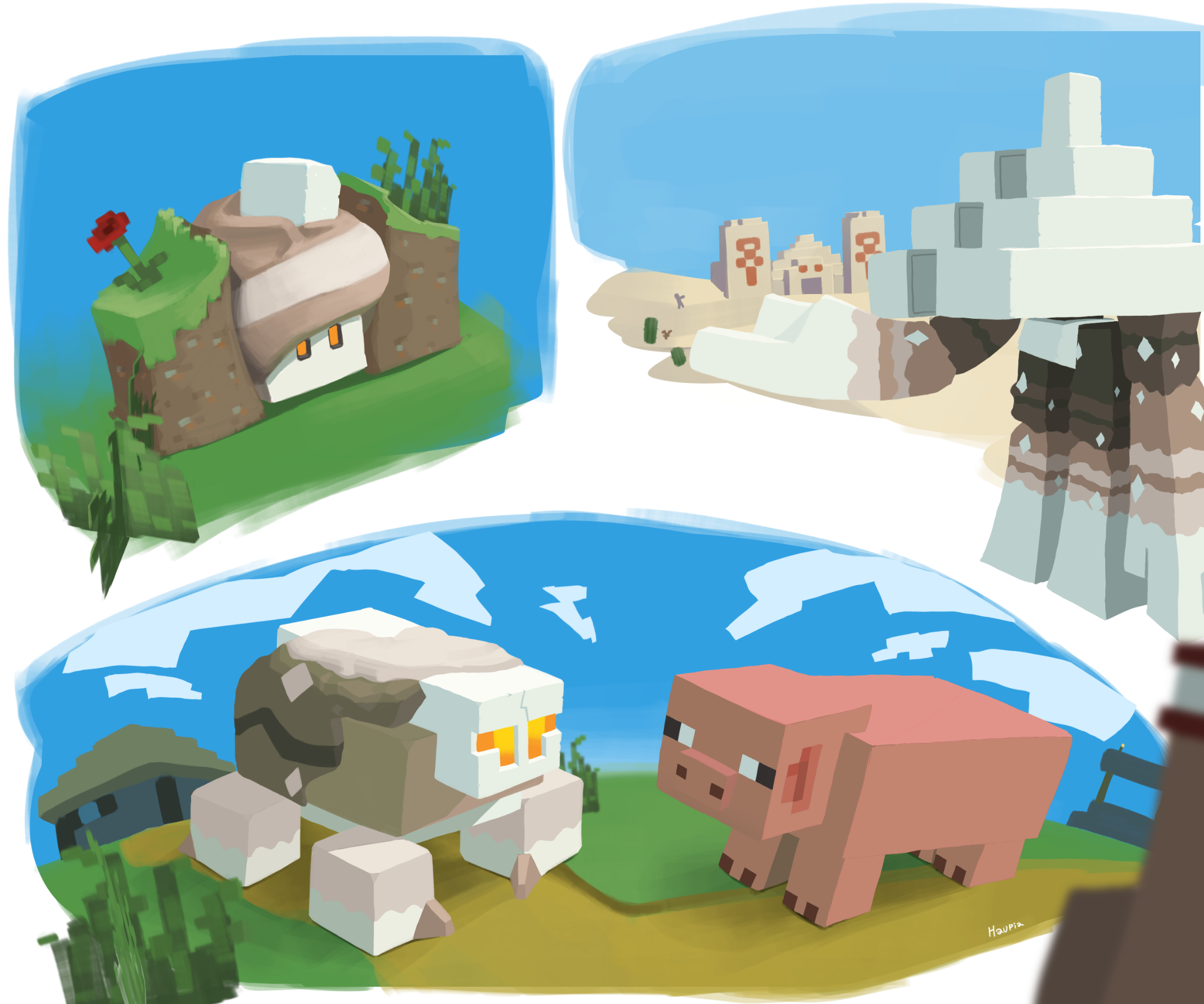 blue_sky building cactus cloud crossover day desert desert_temple_(minecraft) evolutionary_line flower garganacl grass grass_block haupia-lcb highres minecraft nacli naclstack nintendo no_humans outdoors pig pig_(minecraft) pokemon pokemon_(creature) poppy_(flower) red_flower sky