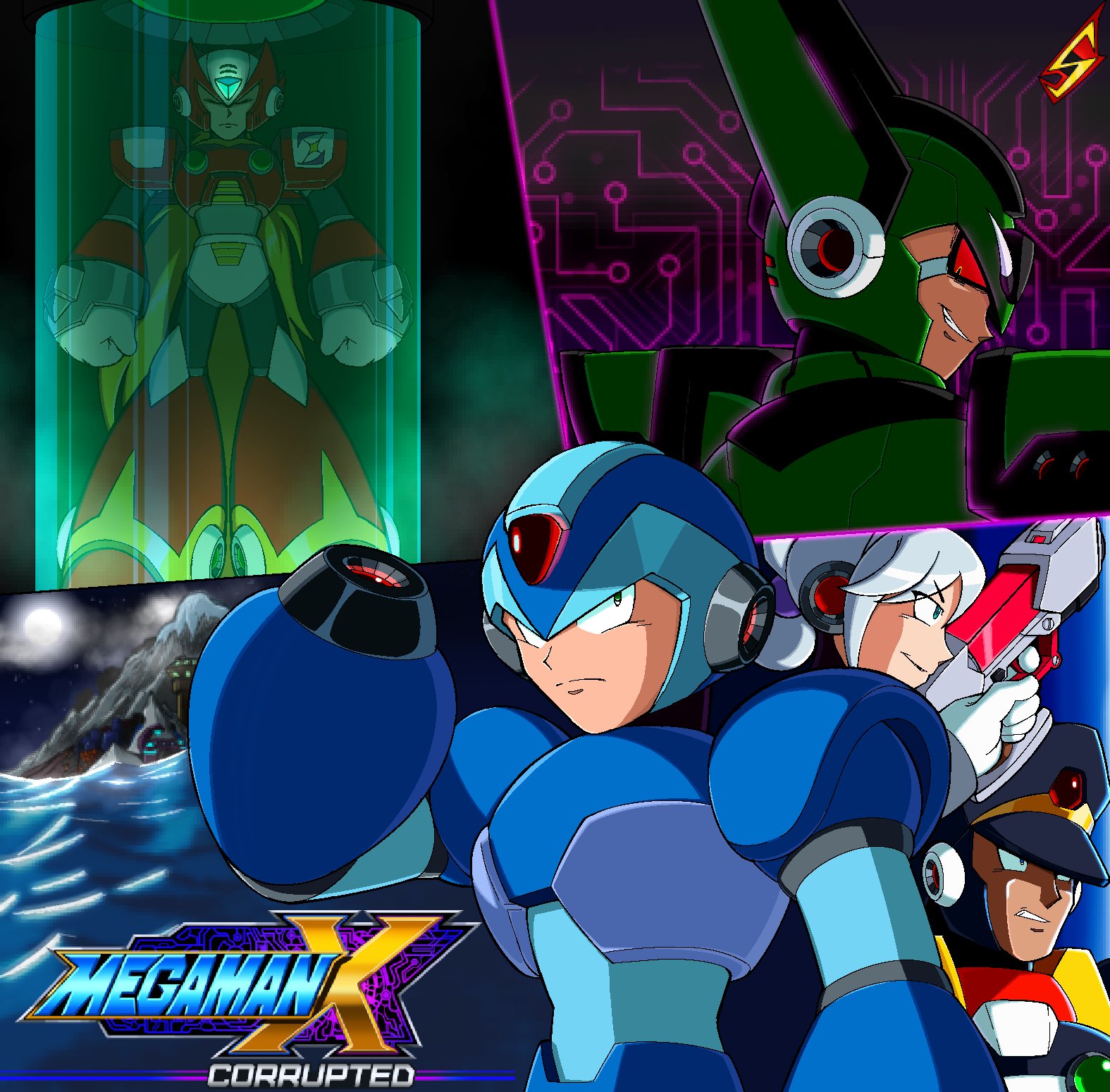 1girl 4boys arm_cannon armor artist_logo black_armor black_helmet blonde_hair blue_armor blue_eyes blue_helmet chest_jewel clenched_hands clenched_teeth closed_eyes closed_mouth colored_sclera eyes_visible_through_hair forehead_jewel full_body glaring green_armor green_eyes green_helmet grey_hair hair_between_eyes hat helmet highres holding holding_weapon logo long_hair looking_at_another mega_man_(series) mega_man_x_(series) mega_man_x_corrupted multiple_boys peaked_cap ponytail red_armor red_helmet red_sclera short_hair shoulder_armor signas_(mega_man) standing strike_(mega_man_x_corrupted) strike_sketch synthia_(mega_man_x_corrupted) teeth upper_body very_long_hair weapon winged_helmet x_(mega_man) zero_(mega_man)