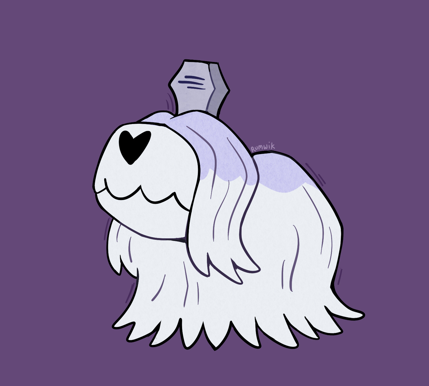 animal_focus artist_name chibi chibi_only closed_mouth commentary english_commentary full_body highres houndstone nintendo no_humans pokemon pokemon_(creature) pokemon_focus purple_background rumwik simple_background solo