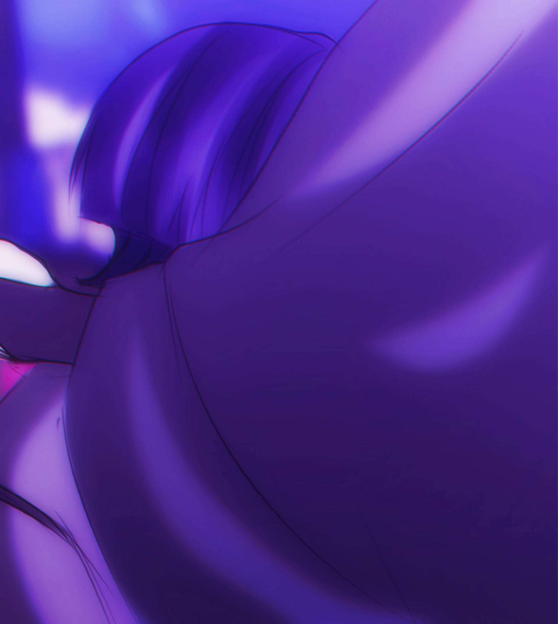 1boy 1girl altreilea blurry blurry_background bridal_gauntlets close-up commentary depth_of_field english_commentary faceless faceless_female faceless_male genshin_impact height_difference highres hug incoming_hug japanese_clothes kimono leaning_forward long_sleeves lower_body mother_and_child mother_and_son multicolored_hair parent_and_child purple_background purple_hair purple_kimono raiden_shogun scaramouche_(genshin_impact) scaramouche_(kabukimono)_(genshin_impact) standing streaked_hair upper_body wide_sleeves