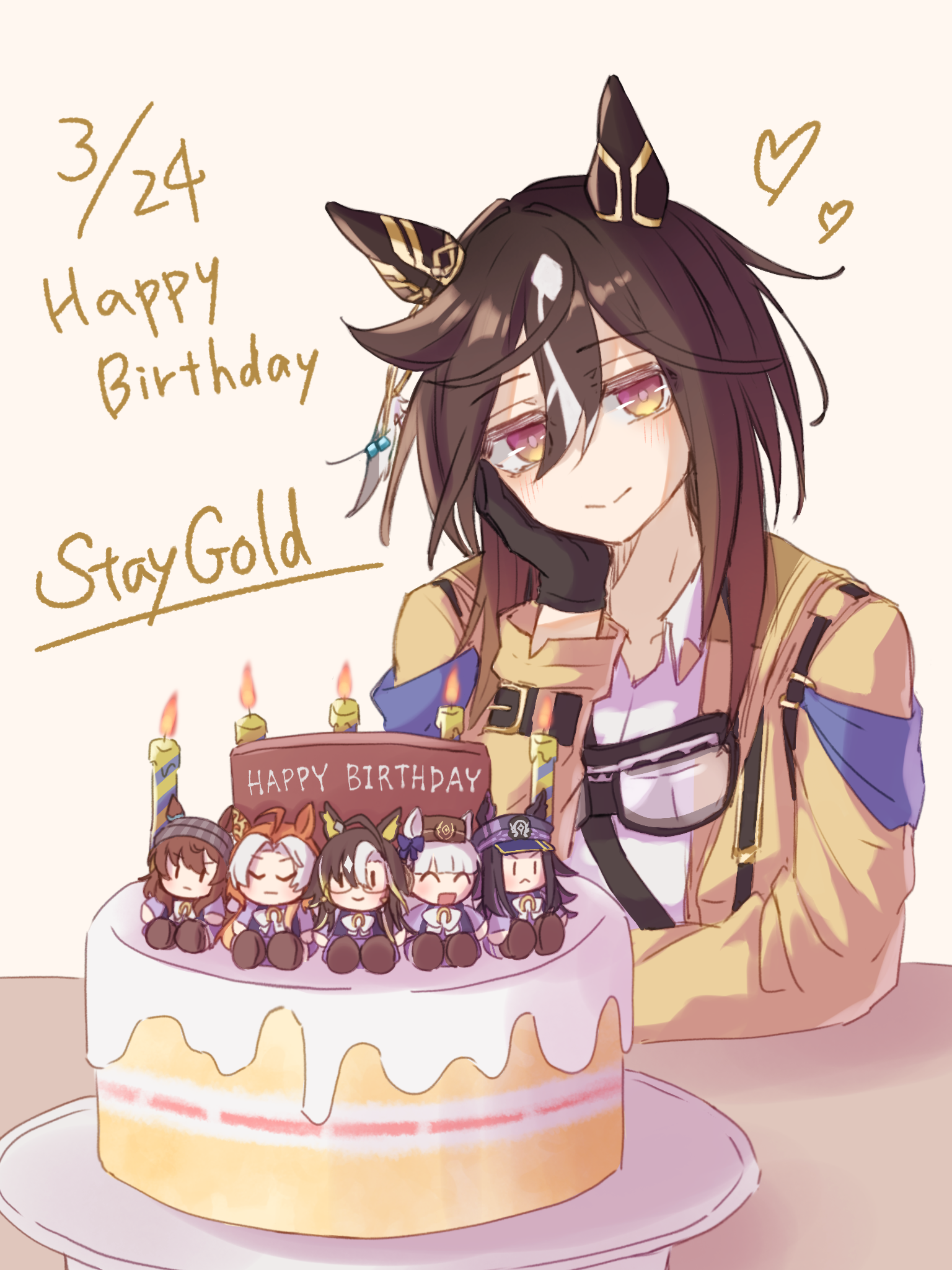 6+girls ahoge animal_ears beanie black_gloves black_hair blunt_bangs blush bow bowtie brown_eyes brown_hair brown_hat brown_shoes cake candle character_name closed_eyes closed_mouth coat commentary_request dream_journey_(umamusume) ear_covers fire food glasses gloves goggles goggles_around_neck gold_ship_(umamusume) grey_hair grey_hat hair_between_eyes happy_birthday hat head_rest heart highres horse_ears horse_girl long_hair multicolored_hair multiple_girls nakayama_festa_(umamusume) open_mouth orange_hair orfevre_(umamusume) pillbox_hat purple_sailor_collar purple_serafuku purple_shirt purple_skirt sailor_collar sailor_shirt school_uniform serafuku shirt shoes single_ear_cover skirt smile stay_gold_(sunlit_outsider)_(umamusume) stay_gold_(umamusume) stay_gold_clan_(umamusume) tracen_school_uniform two-tone_hair umamusume user_pjxn8783 white_bow white_bowtie white_hair white_shirt yellow_coat