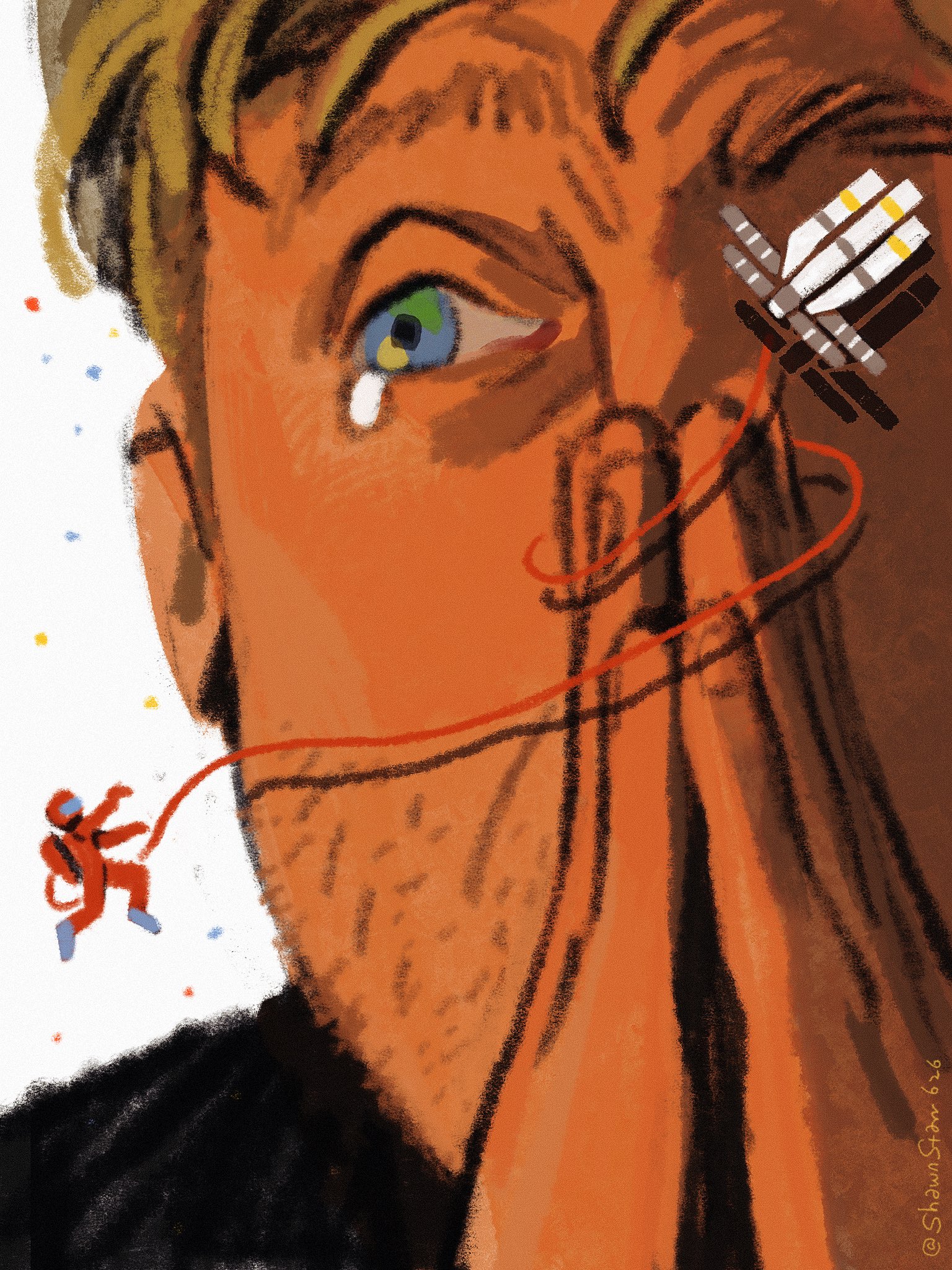 1boy beard beard_stubble facial_hair highres male_focus messy_hair project_hail_mary ryland_grace solo spacesuit starrstrange stubble teardrop