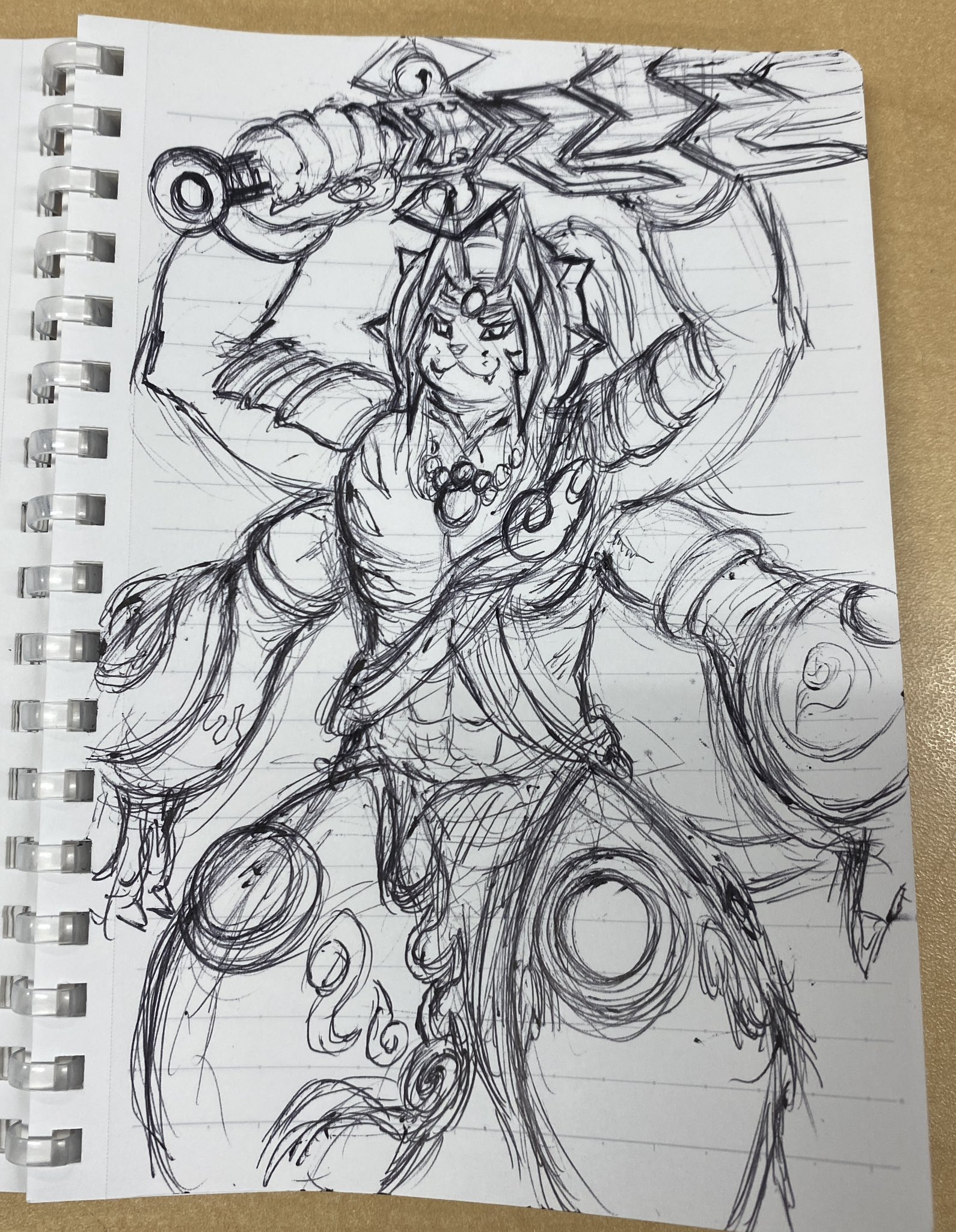 1boy digimon digimon_(creature) furry furry_male habakirimon looking_at_viewer mas_square muscular muscular_male sketch traditional_media