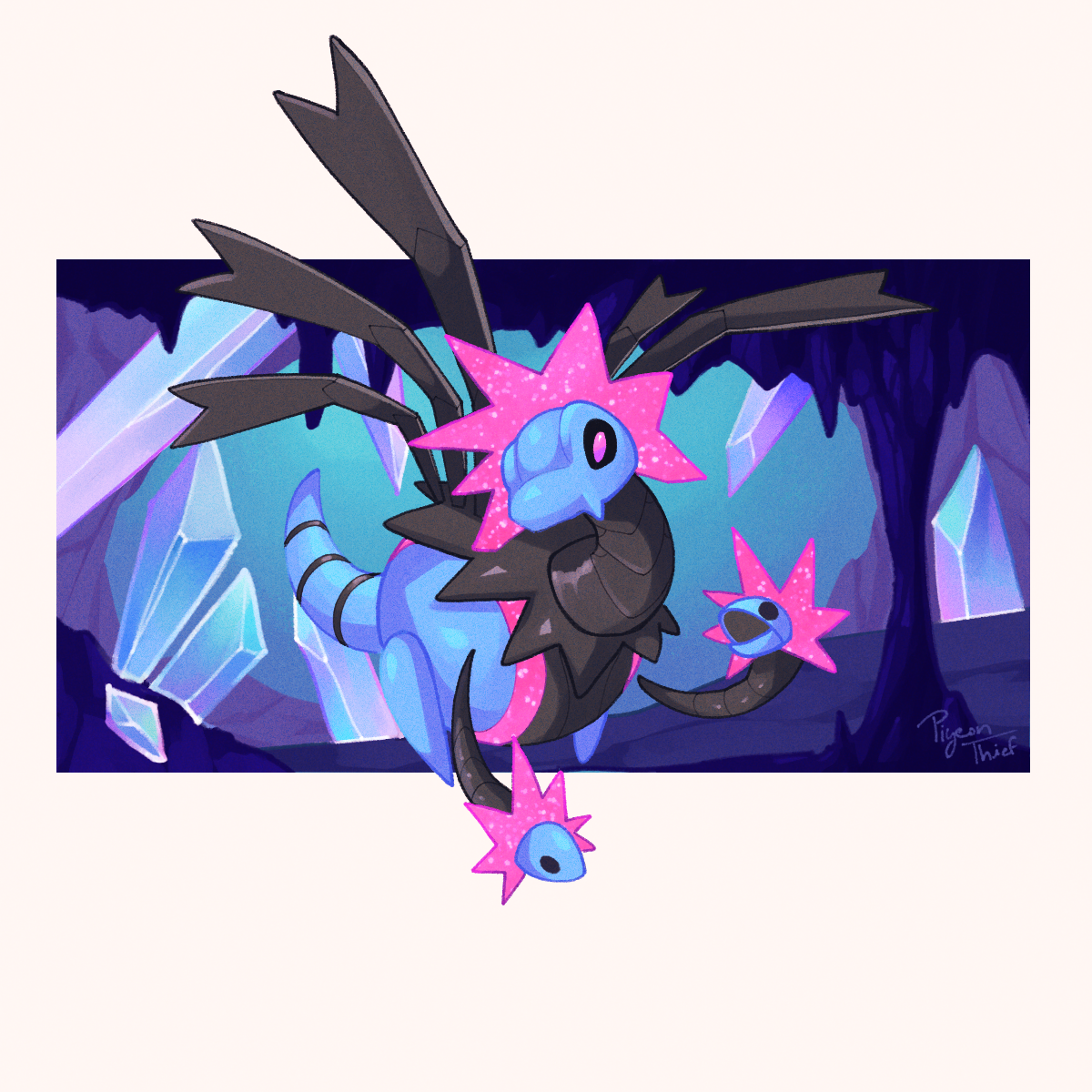 artist_name cave_interior closed_mouth commentary crystal english_commentary flying full_body highres iron_jugulis multiple_heads nintendo no_humans non-humanoid_robot open_mouth pigeon_thief pokemon pokemon_(creature) pokemon_focus robot robot_dragon signature solo stalactite stalagmite