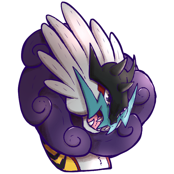 cancrunchgoats commentary cropped_head english_commentary fangs nintendo no_humans open_mouth pokemon pokemon_(creature) pokemon_focus purple_eyes raging_bolt solo transparent_background