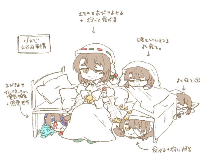5boys absurdres aedd_(e.g.o) alternate_costume amputee antennae arrow_(symbol) arthropod_boy arthropod_limbs artificial_eye ascot bags_under_eyes bandage_on_face bandage_over_one_eye bandaged_head bandages beard_stubble bed bed_sheet bell black-framed_eyewear black-framed_glasses black_sweater blanket blue_horns bow bowtie brown_hair bug bug_arm candle candlestand chest_bow chibi christmas_nightmare_(e.g.o) closed_eyes cockroach_boy collared_dress dress drooling e.g.o_(project_moon) expressionless extra_eyes facial_hair fire formal_clothes fur-trimmed_shawl fur_collar fur_trim g_corp._(identity)_(project_moon) glasses gown green_ribbon green_slippers gregor_(project_moon) hair_between_eyes hair_down hair_intakes hat highres holding holding_candle holding_candlestand horns jitome joints lily26983455 limbus_company limited_palette long_hair long_sleeves looking_ahead looking_at_viewer looking_to_the_side low_ponytail lying male_focus mechanical_arms single_mechanical_eye monster_boy mouth_drool multiple_boys multiple_persona neck_ribbon necktie nightcap official_alternate_costume on_bed on_stomach one_eye_closed one_eye_covered open_mouth pajamas parted_bangs partially_colored photoshop_(medium) pillow plaid_blanket plaid_bow plaid_clothes plaid_shawl ponytail project_moon prosthesis prosthetic_arm purple_shirt red_bow red_eyes red_necktie red_ribbon ribbon ribbon-trimmed_hat rosespanner_workshop_(identity)_(project_moon) sanpaku semi-rimless_eyewear shawl shirt shock_centipede_(project_moon) simple_background single_mechanical_arm sitting sleeping sleepy slippers striped_bow striped_bowtie striped_clothes stubble suit sweater tassel turn_pale two-tone_ribbon under-rim_eyewear under_bed under_covers white_ascot white_background white_dress white_hat white_pajamas wuthering_heights_(identity)_(project_moon) yellow_eyes yellow_tassel