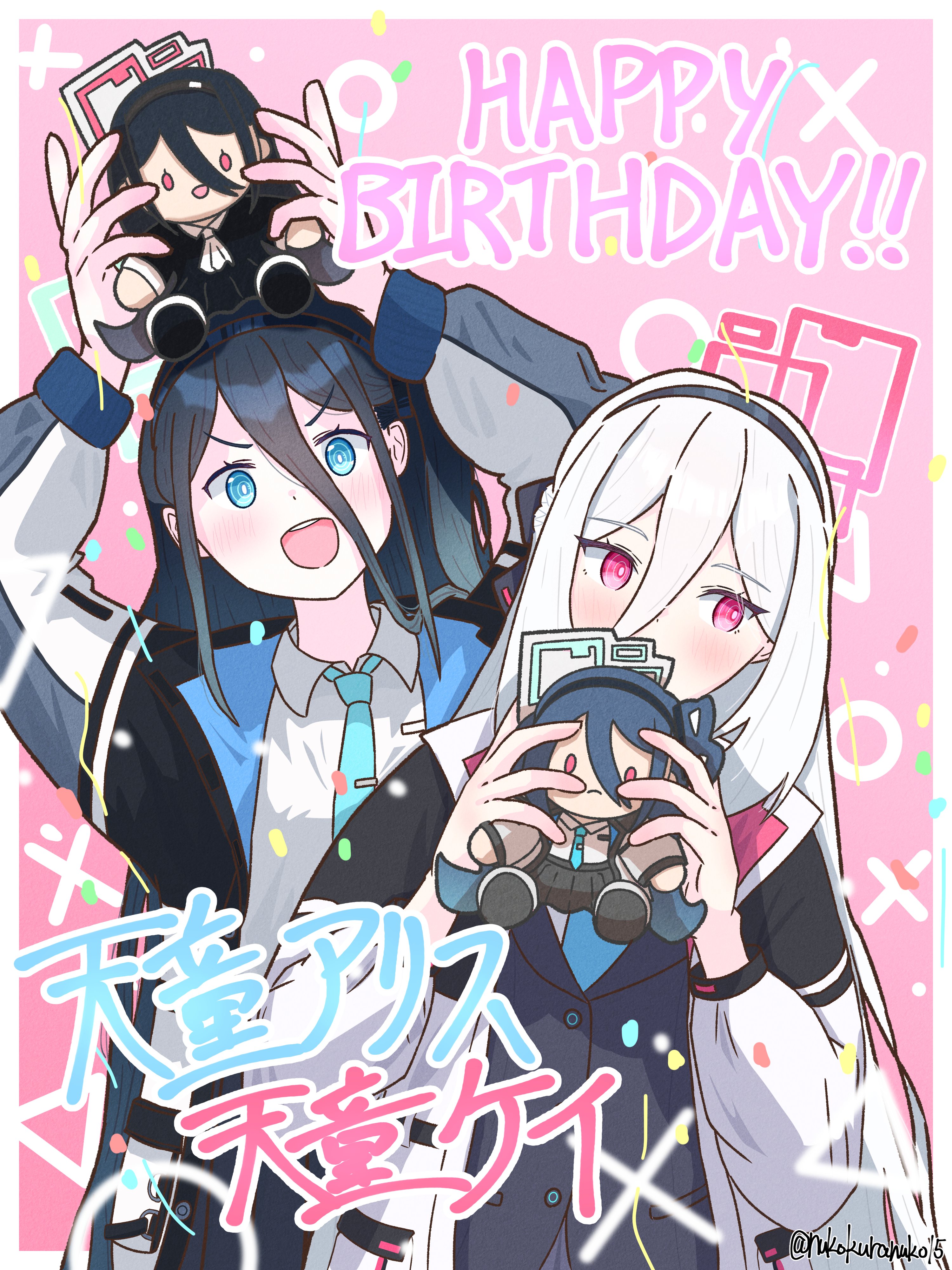 absurdres aris_(blue_archive) blue_archive commentary_request highres kei_(blue_archive) kei_(new_body)_(blue_archive) long_hair nukokuranuko15 open_mouth red_eyes simple_background tagme white_hair