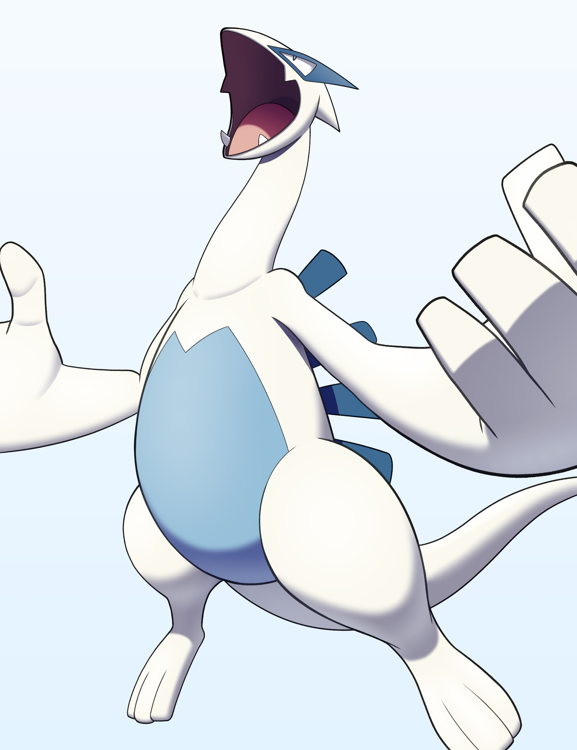 absurdres commentary_request fangs gen_2_pokemon highres kihada_magulo legendary_pokemon lugia nintendo no_humans open_mouth pokemon pokemon_(creature) pokemon_focus simple_background skin_fangs solo tail wings