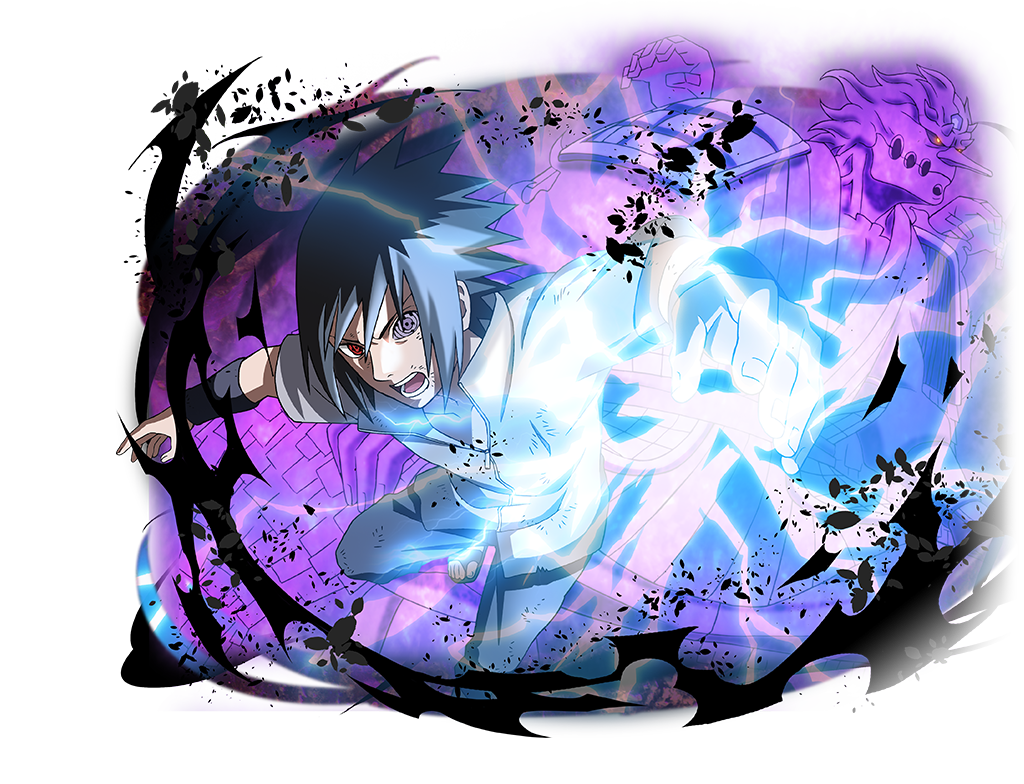 1boy black_boots black_hair black_pants boots chidori_(naruto) grey_jacket heterochromia jacket looking_at_viewer male_focus naruto_(series) naruto_shippuuden naruto_shippuuden:_ultimate_ninja_blazing official_art open-toe_boots open_mouth pants purple_eyes red_eyes rinnegan sharingan short_hair short_sleeves solo teeth uchiha_sasuke
