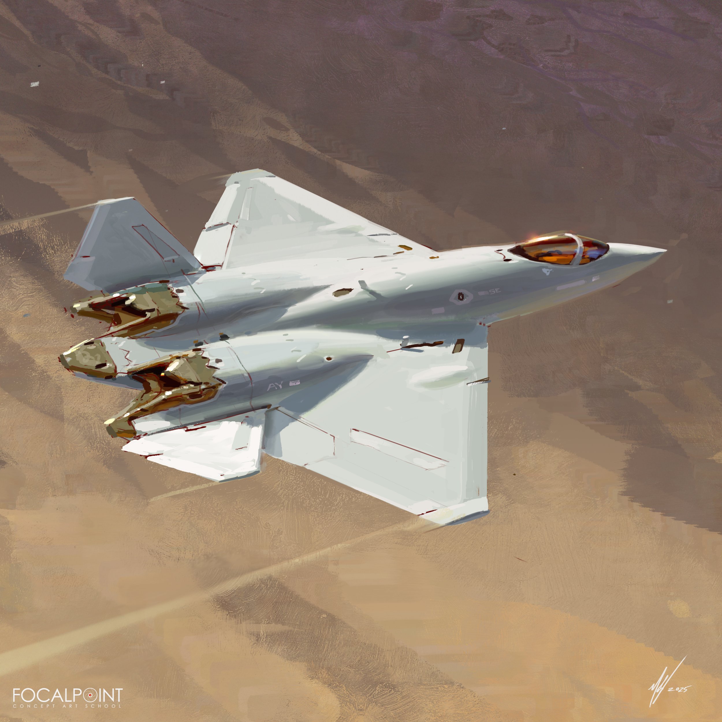 absurdres aircraft airplane blurry blurry_background commentary dated english_commentary fighter_jet flying highres michal_kus military_vehicle no_humans original signature yf-23