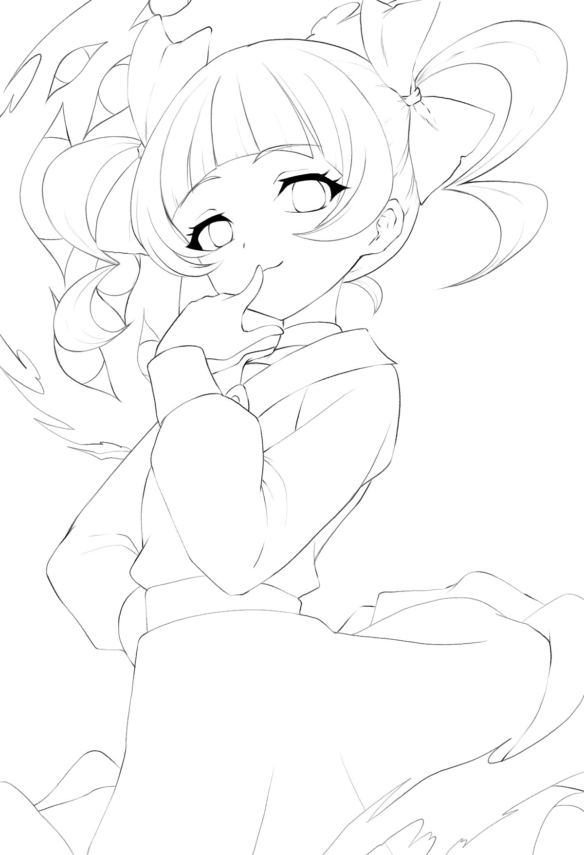 digimon digimon_(creature) lineart looking_at_viewer loyaldis ribbon shademon smile twintails yamada_haruko