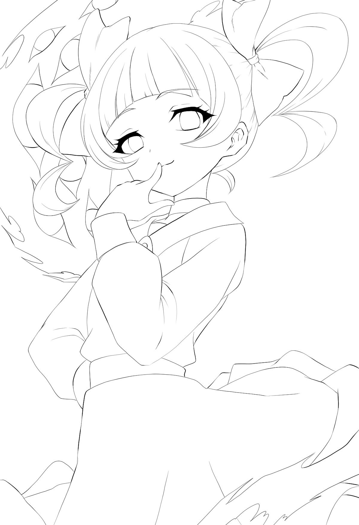 digimon digimon_(creature) lineart looking_at_viewer loyaldis ribbon shademon smile twintails yamada_haruko