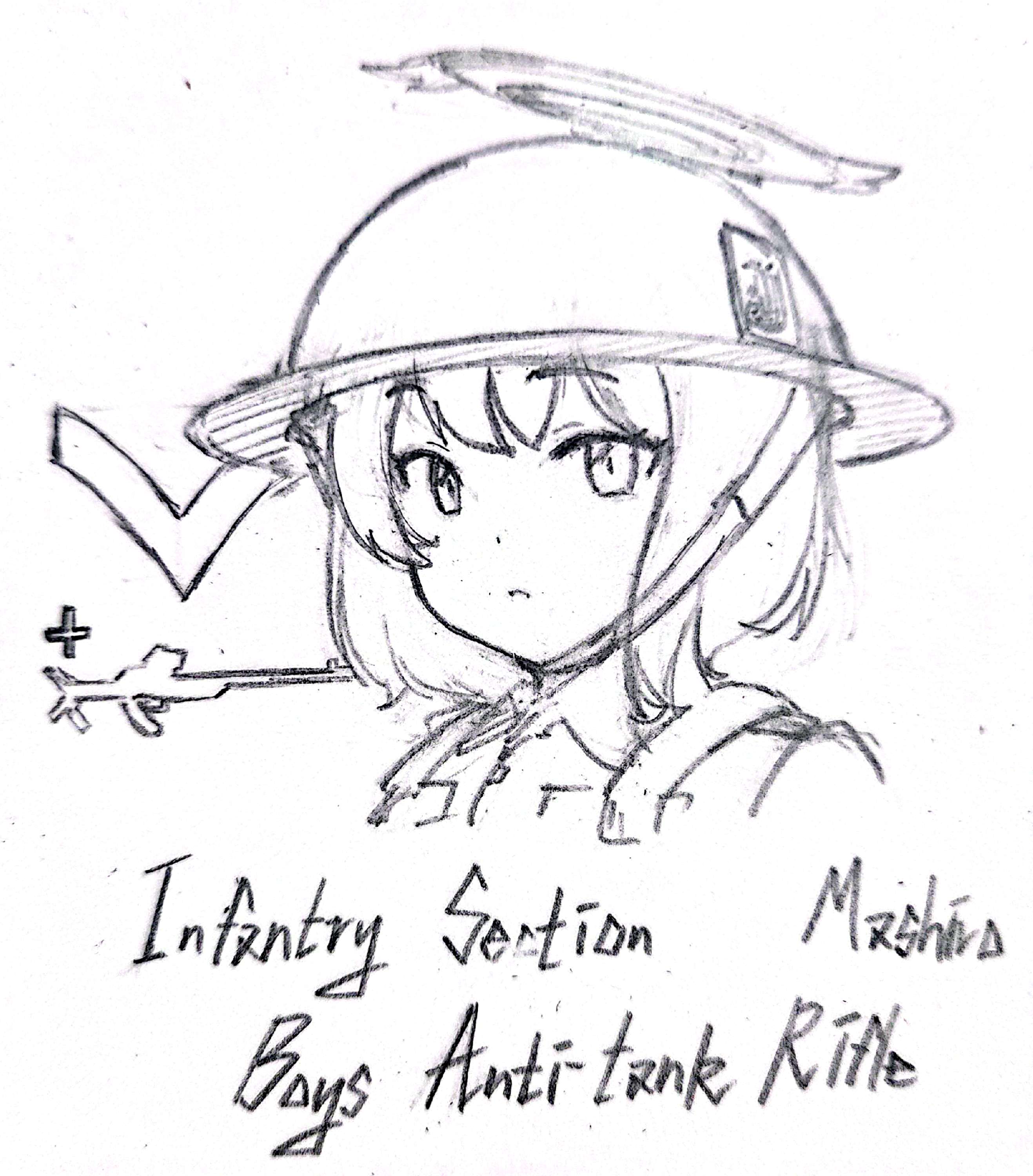 1girl absurdres alternate_costume blue_archive boys_anti_tank_rifle company_of_heroes_3 cosplay english_text goodgameuseless halo highres looking_at_viewer mashiro_(blue_archive) simple_background sketch solo white_background