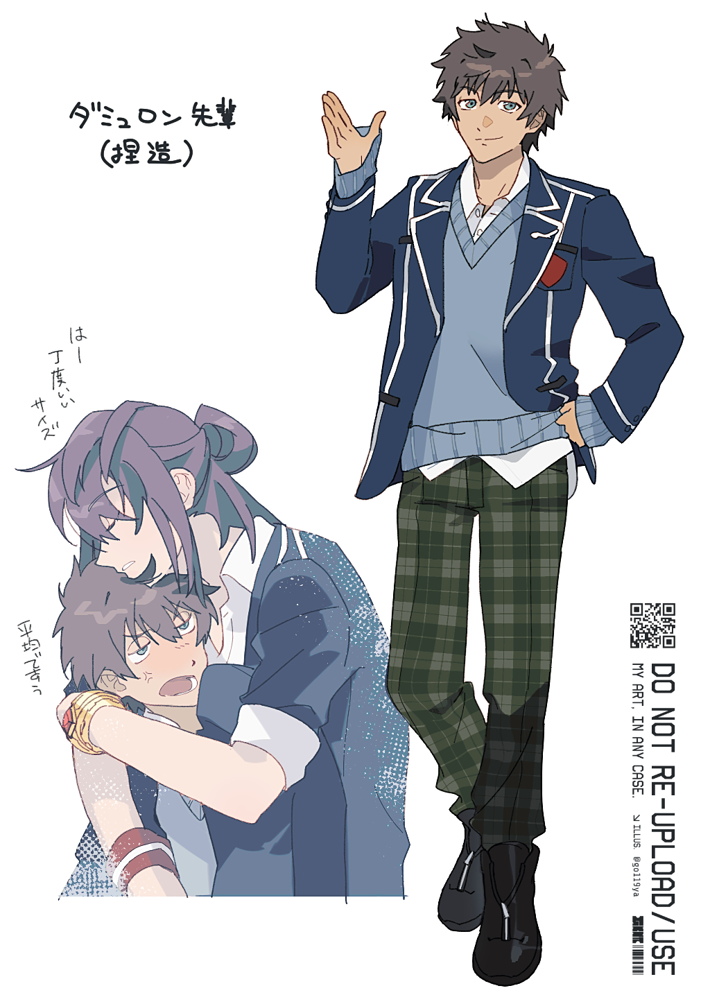 &{ID:13736288 CreatedAt:Fri Mar 27 05:30:08 -0500 2026 Score:0 Width:1024 Height:1448 MD5:ef429b29da80c073ca3ef01862da5e1b Directory:ef/42 Image:ef429b29da80c073ca3ef01862da5e1b.jpg Rating:general Source:https://x.com/go119ya/status/1957125538159722722 Change:1774607408 Owner:danbooru CreatorID:6498 ParentID:0 Sample:0 PreviewHeight:350 PreviewWidth:247 Tags:2boys anger_vein black_hair black_shoes blazer blue_jacket blue_sweater bracelet closed_eyes commentary_request damuron_atomaisu gold_bracelet goya_(xalbino) green_eyes green_pants hair_bun hand_on_own_hip highres hug hug_from_behind jacket jewelry long_hair long_sleeves male_focus multiple_boys pants plaid_clothes plaid_pants school_uniform shirt shoes short_hair simple_background sleeves_past_wrists sleeves_rolled_up sweater tales_of_(series) tales_of_vesperia translation_request untucked_shirt waving white_background white_shirt wristband yuri_lowell yuri_lowell_(reliable_senior) Title: HasNotes:false HasComments:false FileURL:https://img2.gelbooru.com/images/ef/42/ef429b29da80c073ca3ef01862da5e1b.jpg PreviewURL:https://gelbooru.com/thumbnails/ef/42/thumbnail_ef429b29da80c073ca3ef01862da5e1b.jpg SampleURL: SampleHeight:0 SampleWidth:0 Status:active PostLocked:0 HasChildren:false IsVideo:false DisplayDate:27.03.2026 05:30}