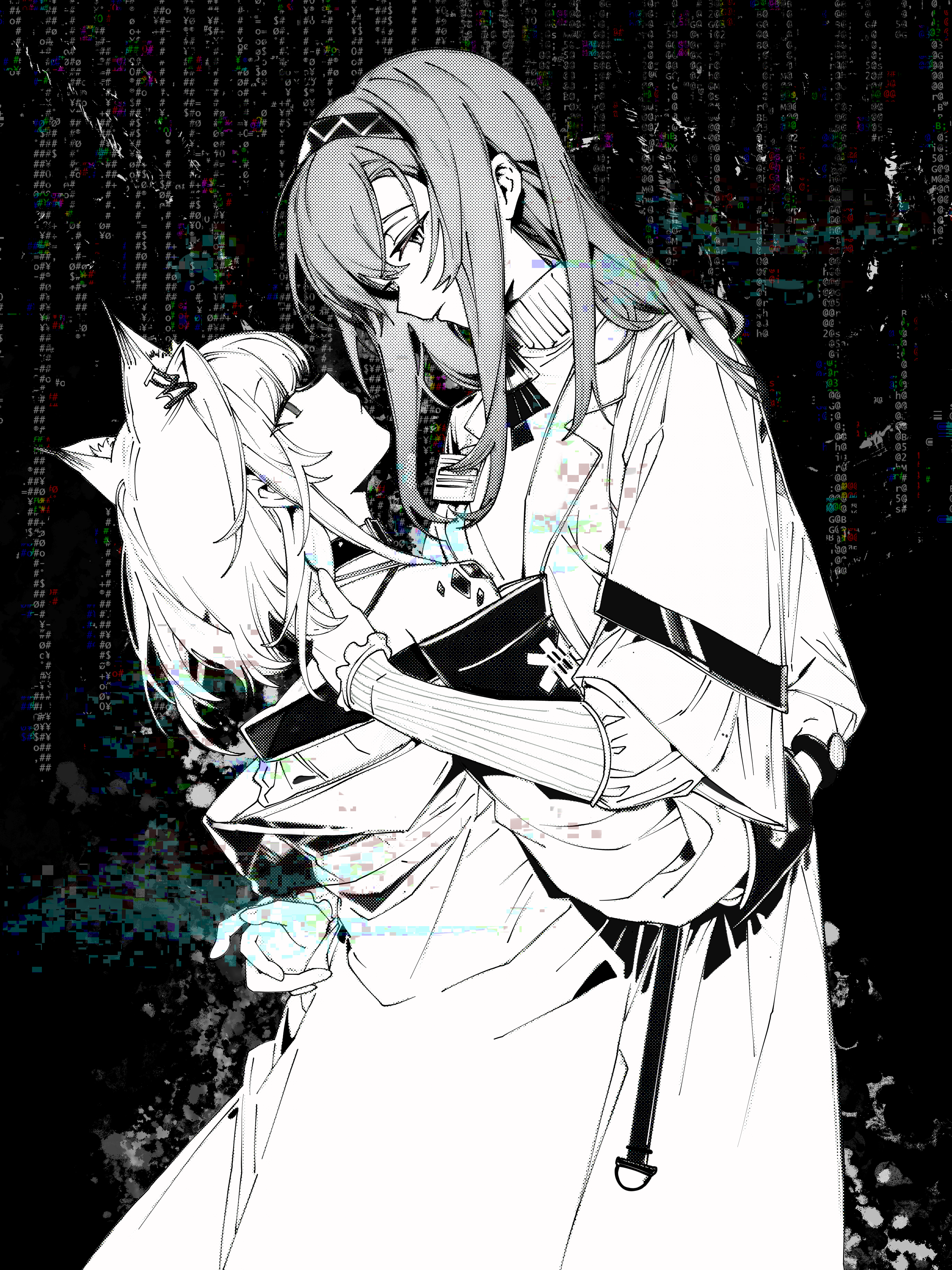 &{ID:13738893 CreatedAt:Fri Mar 27 13:30:25 -0500 2026 Score:0 Width:3000 Height:4000 MD5:11fe44bec584b311becf4f2514890ec7 Directory:11/fe Image:11fe44bec584b311becf4f2514890ec7.png Rating:general Source:https://pingan314.lofter.com/post/2053d774_2bf6be75d Change:1774636227 Owner:danbooru CreatorID:6498 ParentID:0 Sample:1 PreviewHeight:350 PreviewWidth:262 Tags:19680824 2girls absurdres animal_ear_fluff animal_ears arknights bare_shoulders black_background cat_ears cat_girl chinese_commentary closed_mouth coat commentary_request cowboy_shot expressionless eye_contact face-to-face glitch greyscale hair_between_eyes hairband highres kal'tsit_(arknights) lifting_person long_hair long_sleeves looking_at_another material_growth monochrome multiple_girls oripathy_lesion_(arknights) priestess_(arknights) short_hair standing sweater turtleneck turtleneck_sweater Title: HasNotes:false HasComments:false FileURL:https://img2.gelbooru.com/images/11/fe/11fe44bec584b311becf4f2514890ec7.png PreviewURL:https://gelbooru.com/thumbnails/11/fe/thumbnail_11fe44bec584b311becf4f2514890ec7.jpg SampleURL:https://img2.gelbooru.com/samples/11/fe/sample_11fe44bec584b311becf4f2514890ec7.jpg SampleHeight:1133 SampleWidth:850 Status:active PostLocked:0 HasChildren:false IsVideo:false DisplayDate:27.03.2026 13:30}