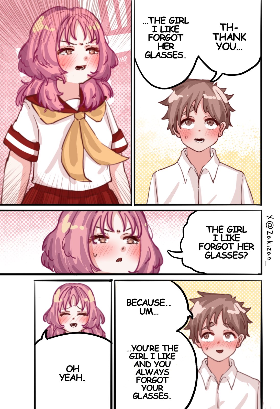 1boy 1girl blush chainsaw_man commentary english_commentary happy highres looking_up meme school_uniform shirt smile squinting sukinako_ga_megane_wo_wasureta sweat thank_you_chainsaw_man_(meme) white_shirt zakizan