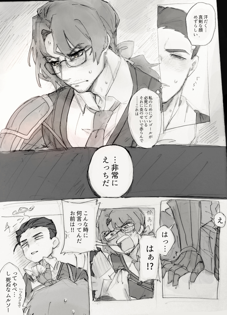 2boys absurdres alternate_costume amputee angry armor beard_stubble blank_eyes blush bow bruise closed_mouth clothes_grab clothes_lift clothes_pull collared_shirt comic cuts dress_shirt expressionless eyes_visible_through_hair facial_hair formal_clothes from_above from_side frown full-face_blush gauntlets giving_up_the_ghost glaring glasses graphite_(medium) gregor_(project_moon) greyscale hair_bow hair_ribbon hand_on_another's_stomach highres injury jitome joints limbus_company liu_association_south_uniform long_hair long_sleeves looking_at_another looking_down low_ponytail lying male_focus mechanical_arms meursault_(project_moon) monochrome multiple_boys necktie official_alternate_costume on_back open_mouth pants parted_bangs parted_lips photoshop_(medium) ponytail project_moon prosthesis prosthetic_arm ribbon sanpaku semi-rimless_eyewear shirt shirt_lift shirt_pull short_hair shoulder_armor simple_background single_mechanical_arm sketch speech_bubble strap stubble suit sweat sweatdrop talking teeth thought_bubble toned toned_male traditional_media under-rim_eyewear upper_body upper_teeth_only vest yaoi