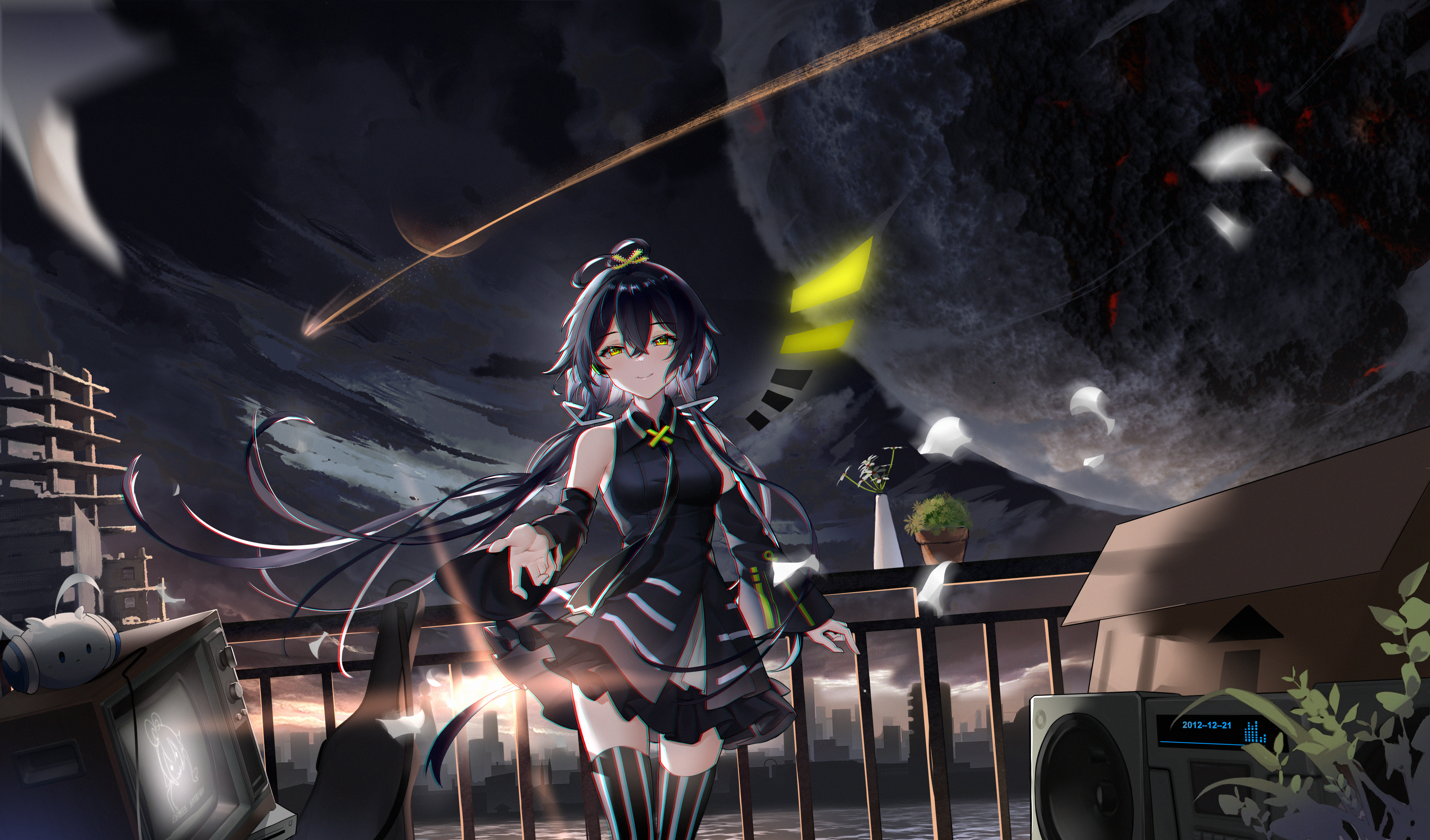 &{ID:13743718 CreatedAt:Sat Mar 28 10:16:56 -0500 2026 Score:0 Width:4067 Height:2389 MD5:8b6b0ac16ea3bf14c246feb15e0347c1 Directory:8b/6b Image:8b6b0ac16ea3bf14c246feb15e0347c1.jpg Rating:general Source:https://www.pixiv.net/artworks/103690381 Change:1774711017 Owner:danbooru CreatorID:6498 ParentID:0 Sample:1 PreviewHeight:205 PreviewWidth:350 Tags:1girl absurdres bare_shoulders black_hair black_shirt black_skirt black_sky black_sleeves black_socks commentary_request detached_sleeves feixianji_(hairstyle) hair_rings highres light_rays long_hair looking_at_viewer luo_tianyi reaching reaching_towards_viewer shirt shooting_star short_hair_with_long_locks single_wing skirt sky smile socks solo thighhighs tian_dian vocaloid vsinger_(vocaloid) wings yellow_eyes yu_yi_connect zettai_ryouiki Title: HasNotes:false HasComments:false FileURL:https://img2.gelbooru.com/images/8b/6b/8b6b0ac16ea3bf14c246feb15e0347c1.jpg PreviewURL:https://gelbooru.com/thumbnails/8b/6b/thumbnail_8b6b0ac16ea3bf14c246feb15e0347c1.jpg SampleURL:https://img2.gelbooru.com/samples/8b/6b/sample_8b6b0ac16ea3bf14c246feb15e0347c1.jpg SampleHeight:499 SampleWidth:850 Status:active PostLocked:0 HasChildren:false IsVideo:false DisplayDate:28.03.2026 10:16}