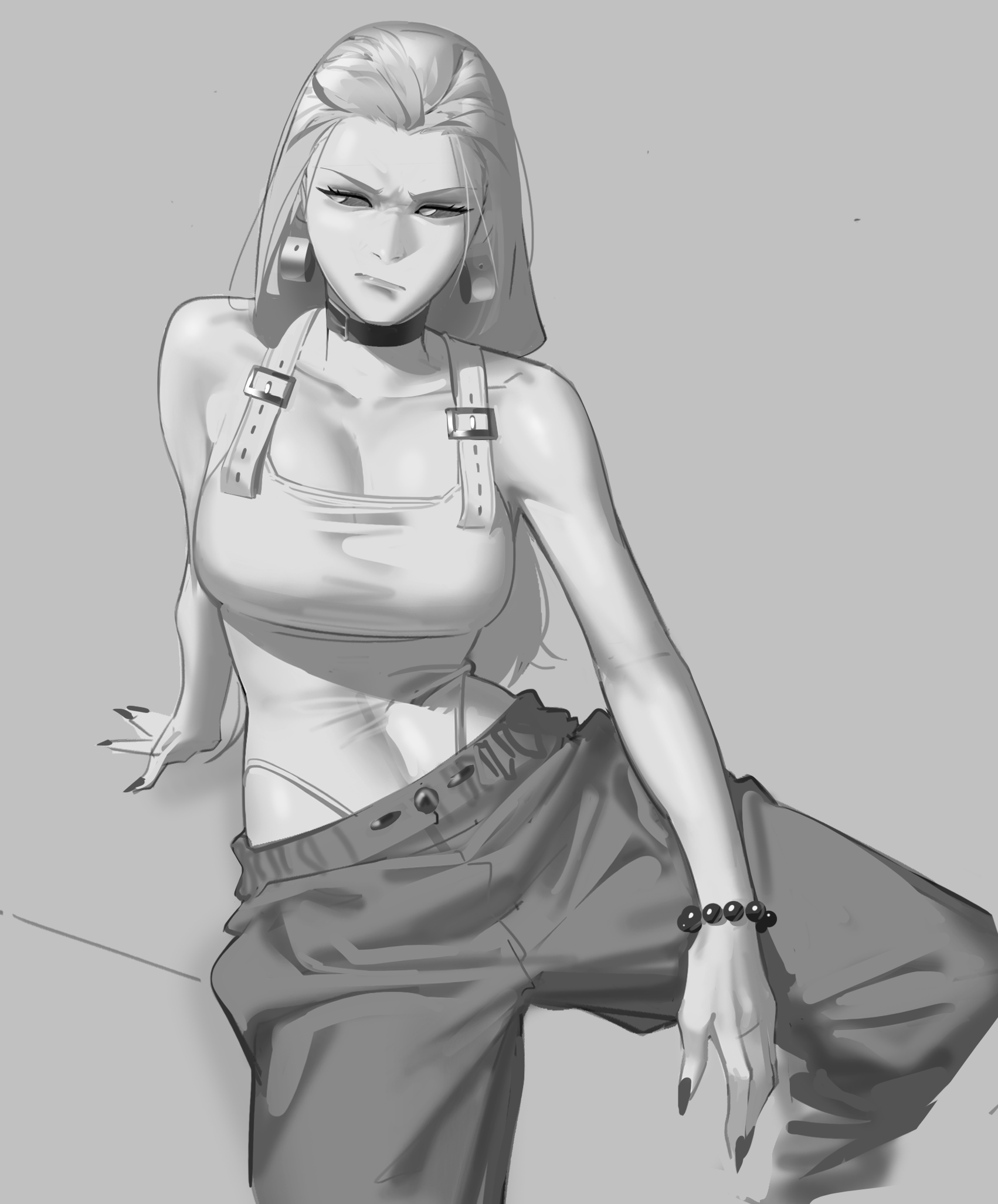 1girl black_sclera colored_sclera earrings greyscale highres jewelry jujutsu_kaisen long_hair monochrome ness_as2 solo solo_focus uro_takako