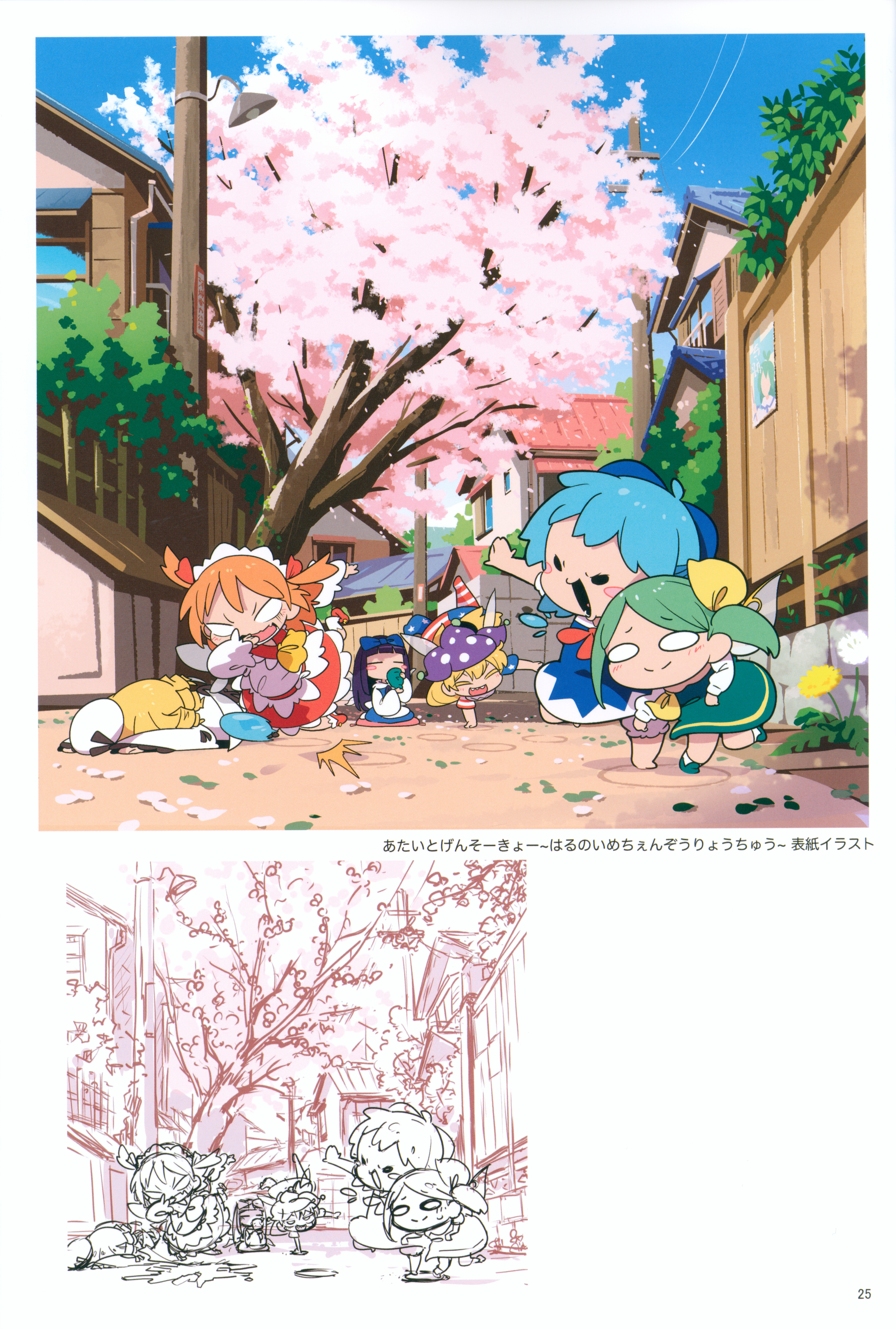 6+girls :d absurdres american_flag_dress ascot bad_source barefoot blonde_hair bloomers blue_dress blue_hair bow bowtie brown_hair cherry_blossoms chibi chibi_only cirno closed_eyes closed_mouth clownpiece cup daiyousei day dress drinking fallen_down frilled_dress frills green_hair hair_ribbon handstand hat highres holding holding_cup house jester_cap long_hair long_sleeves luna_child lying moyazou_(kitaguni_moyashi_seizoujo) multiple_girls o_o on_stomach one_arm_handstand open_mouth orange_hair outdoors outstretched_arm red_bow red_bowtie red_dress red_ribbon ribbon scan shirt short_hair short_sleeves sketch smile star_sapphire sunny_milk third-party_source touhou translation_request tree underwear walking white_bloomers white_hat white_shirt yellow_ascot yellow_ribbon