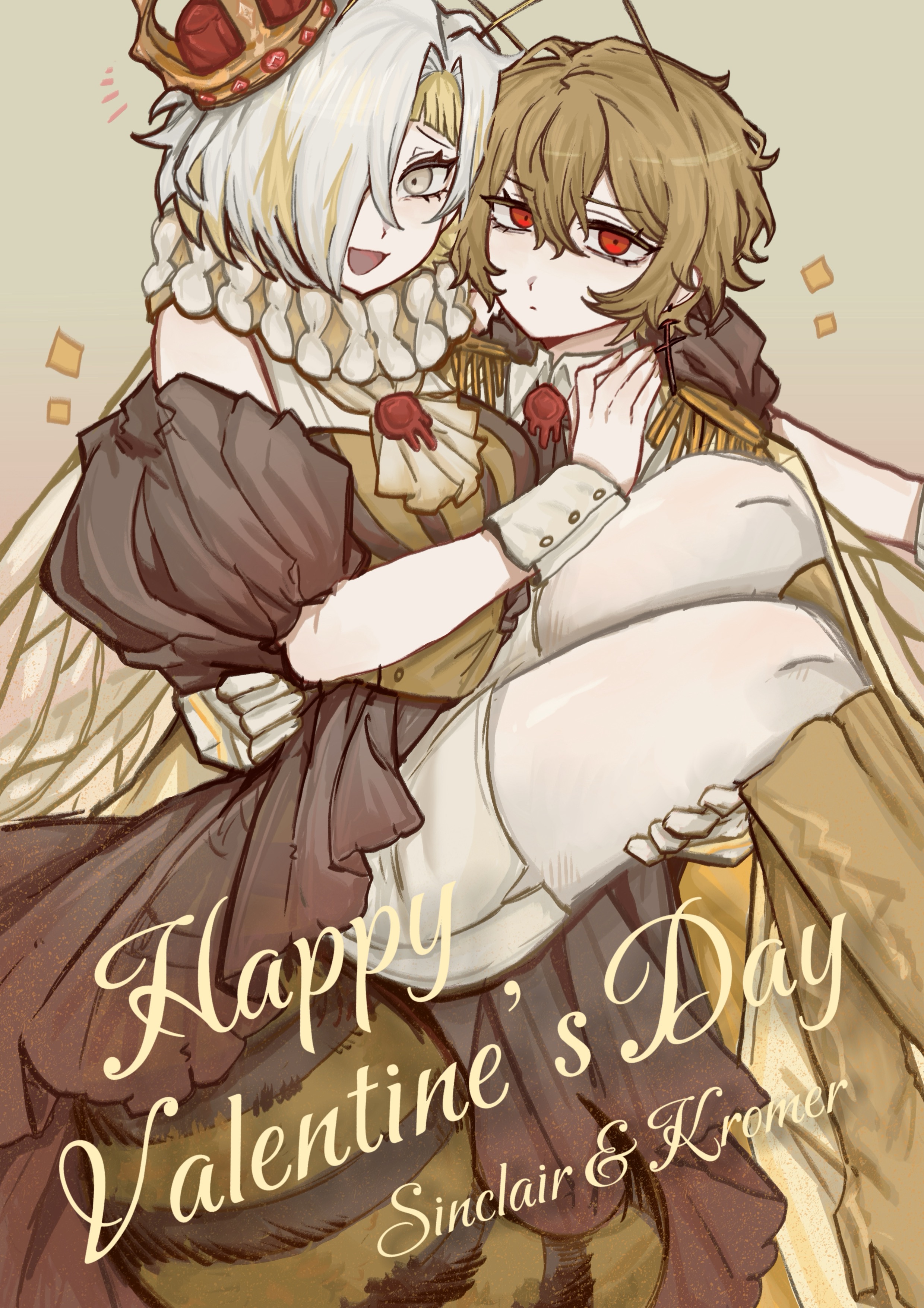 &{ID:13746767 CreatedAt:Sat Mar 28 20:15:07 -0500 2026 Score:0 Width:2480 Height:3508 MD5:1d066676a7f627e50aee0481f5ee886c Directory:1d/06 Image:1d066676a7f627e50aee0481f5ee886c.jpg Rating:general Source:https://zhongshengzhihongmaomaochi.lofter.com/post/8b933206_34d707241 Change:1774746908 Owner:danbooru CreatorID:6498 ParentID:0 Sample:1 PreviewHeight:350 PreviewWidth:247 Tags:1boy 1girl absurdres adapted_costume alternate_eye_color antennae arthropod_boy arthropod_girl ascot bee_girl black_dress blonde_hair boots carrying carrying_person character_name chinese_commentary closed_mouth commentary_request crown dress earrings epaulettes gatti_love hair_over_one_eye happy_valentine highres insect_girl insect_wings jewelry kromer_(project_moon) limbus_company looking_at_viewer multicolored_hair n_corp._fanatic_(identity)_(project_moon) neck_ruff open_mouth pants princess_carry project_moon red_eyes short_hair short_sleeves simple_background sinclair_(project_moon) smile striped_clothes striped_dress two-tone_hair wax_seal white_ascot white_eyes white_hair white_pants wings wrist_cuffs Title: HasNotes:false HasComments:false FileURL:https://img2.gelbooru.com/images/1d/06/1d066676a7f627e50aee0481f5ee886c.jpg PreviewURL:https://gelbooru.com/thumbnails/1d/06/thumbnail_1d066676a7f627e50aee0481f5ee886c.jpg SampleURL:https://img2.gelbooru.com/samples/1d/06/sample_1d066676a7f627e50aee0481f5ee886c.jpg SampleHeight:1202 SampleWidth:850 Status:active PostLocked:0 HasChildren:false IsVideo:false DisplayDate:28.03.2026 20:15}